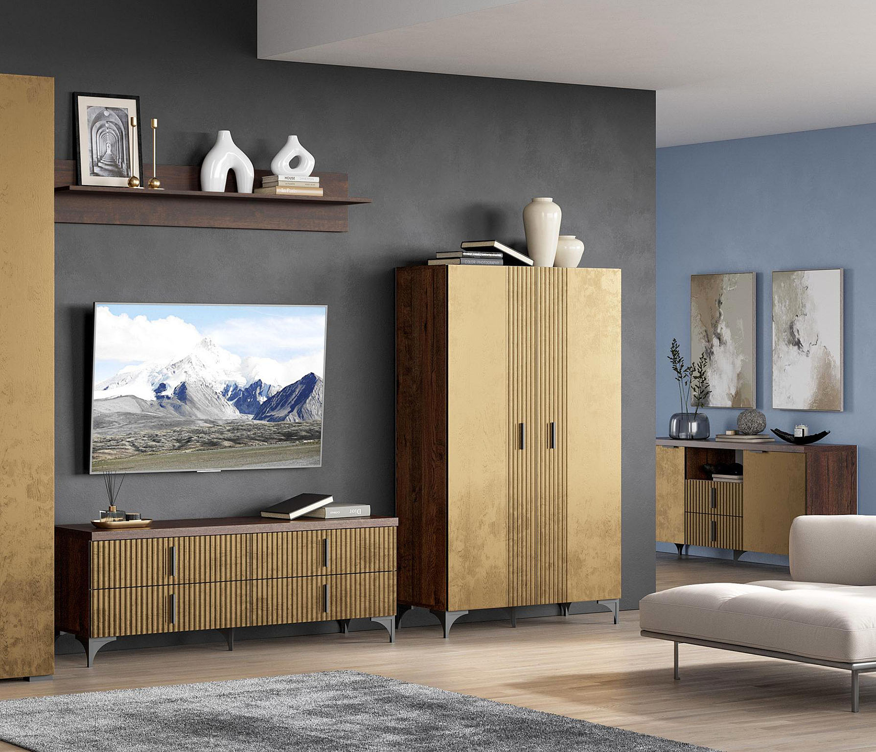 Шер, дуб апрель темный, лофт голден пэлес