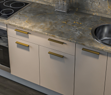 Модульная кухня "Соренто" в цвете Кашемир Серый — это современное сочетание элегантности и функциональности. Мягкий серый оттенок "Кашемир" придаёт кухне утончённый и стильный вид, создавая атмосферу уюта и спокойствия. Фасады мебели выполнены из качественных материалов, что обеспечивает долговечность и лёгкость в уходе.