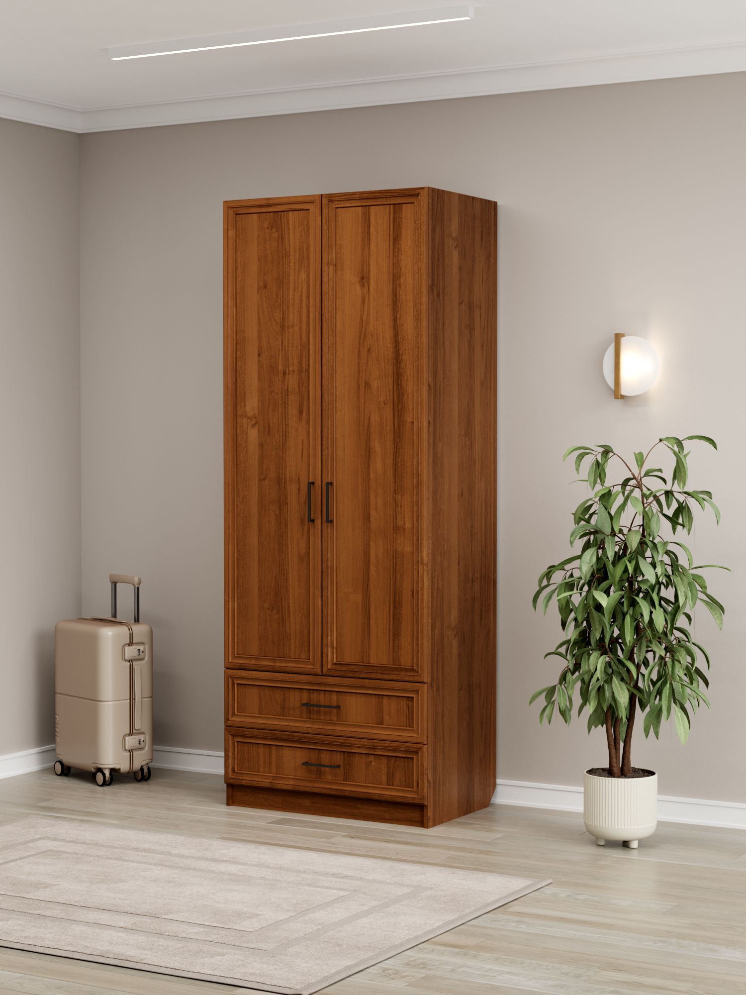 Шкафы двухстворчатые коричневого цвета