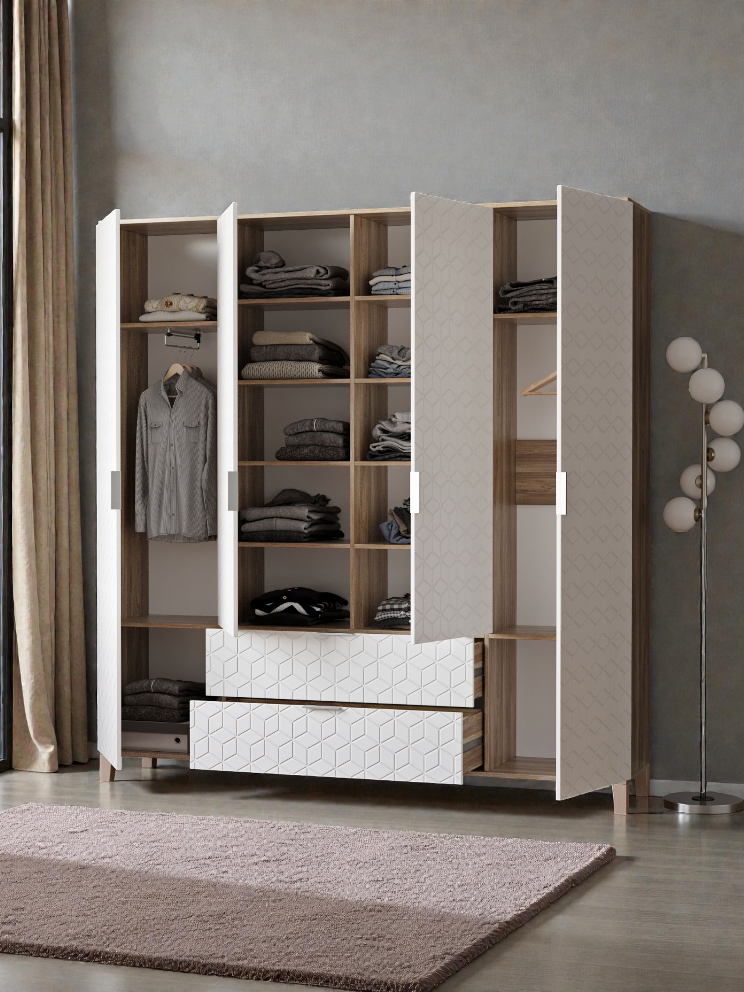 Шкафы Марвин, выполненные в скандинавском стиле, органично дополнят интерьер любой комнаты. Ножки из массива бука, геометрическая фрезеровка на фасадах, сочетание цветов отличительная черта серии Шкафов Марвин.