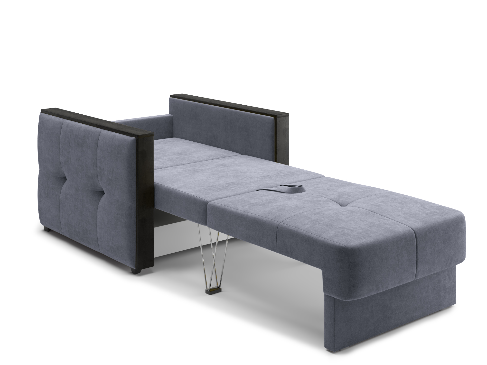 - Механизм раскладки трёхсекционная еврокнижка. В отличие от еврокнижки, спальное место у такого дивана образуется поперёк, а не вдоль сидячего места и состоит из трёх частей. Благодаря такой конструкции габариты дивана в ширину могут быть значительно меньше, чем у еврокнижки, что актуально при планировании расстановки мебели в зависимости от размеров помещения. Под сиденьем дивана находится короб для хранения вещей и постельных принадлежностей.