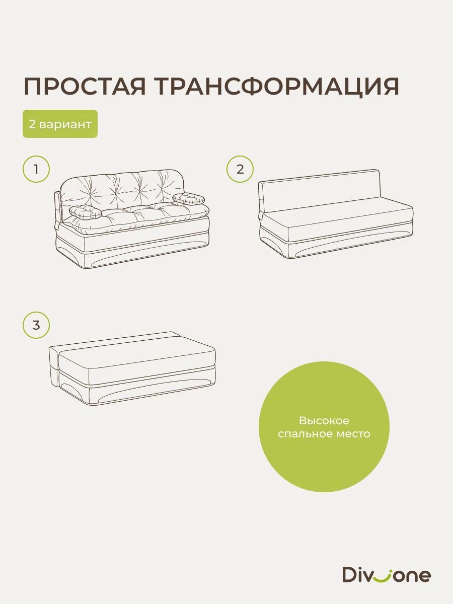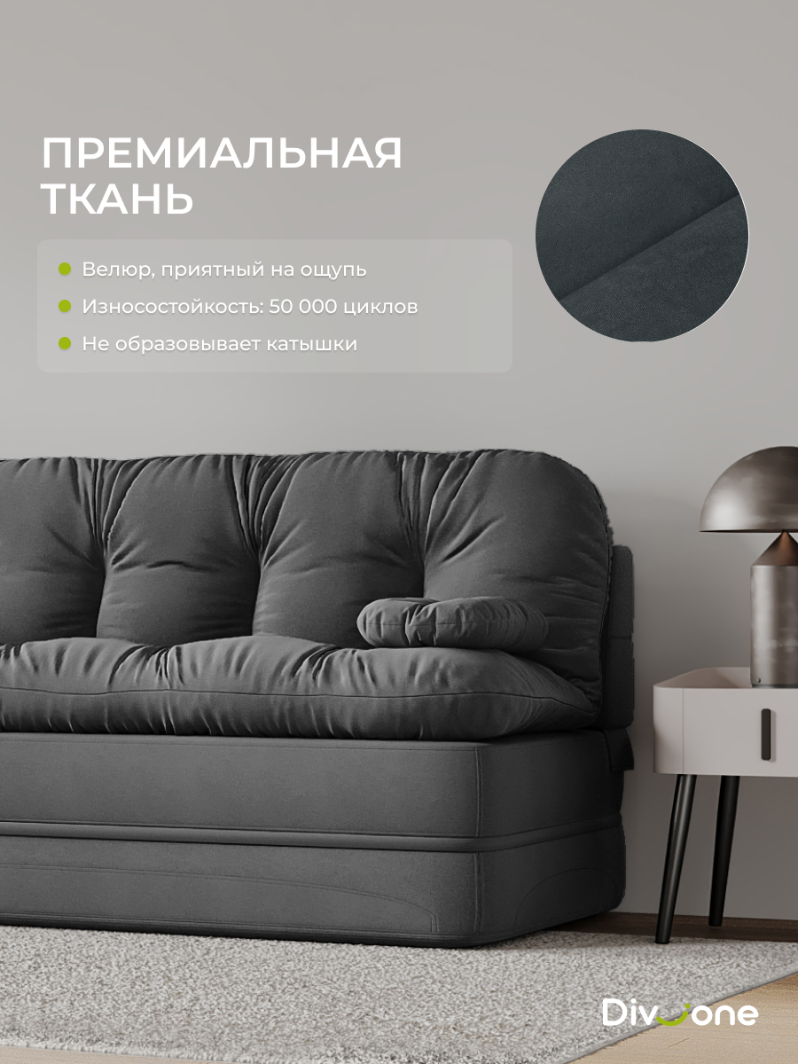 Если вы ищете предмет интерьера, способный стать центром притяжения для всей семьи, то продукция Div-one станет вашим идеальным решением. Представляем вам раскладной диван кровать «Клиффорд Макси» — воплощение современного комфорта и безупречной функциональности. Размещенный в просторной лофт гостиной, он легко позволяет с удобством расположить большую компанию. Перина матрас поможет организовать дополнительное гостевое ложе, когда это необходимо. Трансформация без механизма: а) Достаточно отодвинуть изделие от стены и плавно опустить спинку (200х120см). б) Можно откинуть прямой диван как книжку на пол и получить полноценное двухспальное место для взрослых (200х190см). В разложенном состоянии образуется ровная и прямая поверхность, обеспечивающая ортопедический правильную поддержку тела и гарантирующая полноценный отдых во время сна. Модель без ножек рассчитана на максимальную нагрузку до 200 килограмм, что подтверждает её надежность.
