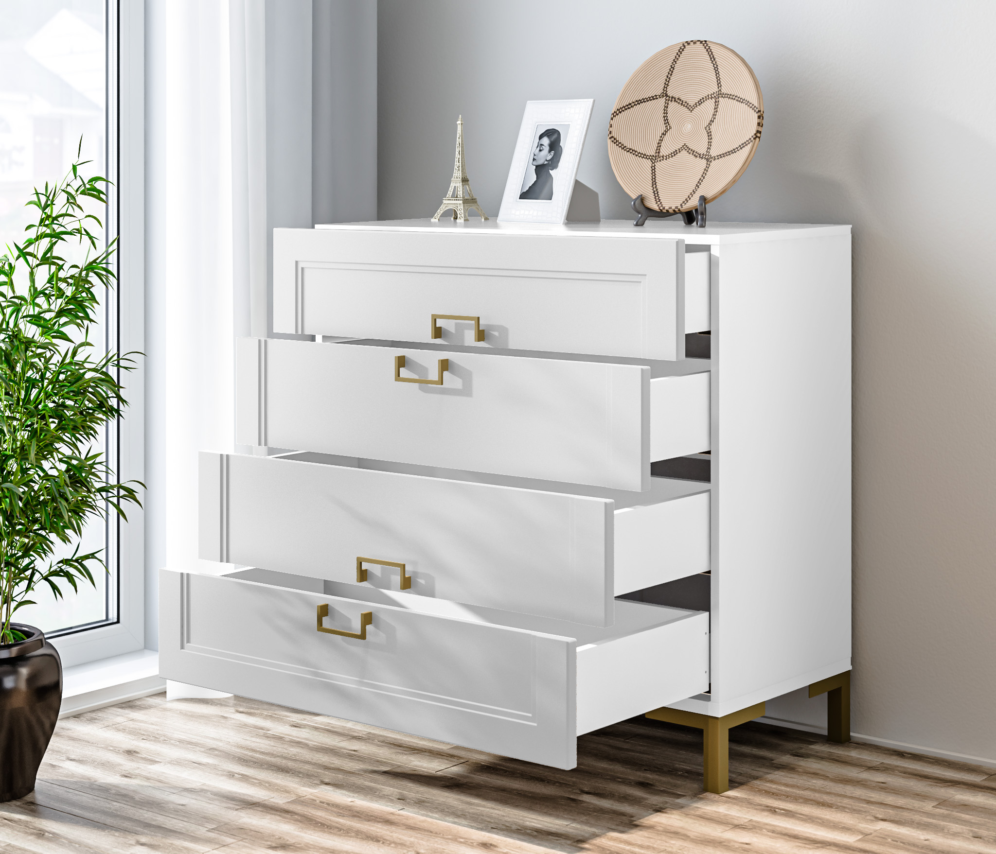 Комод Ассоль СБ-3434 Белый/МДФ Белый Код 00000329353