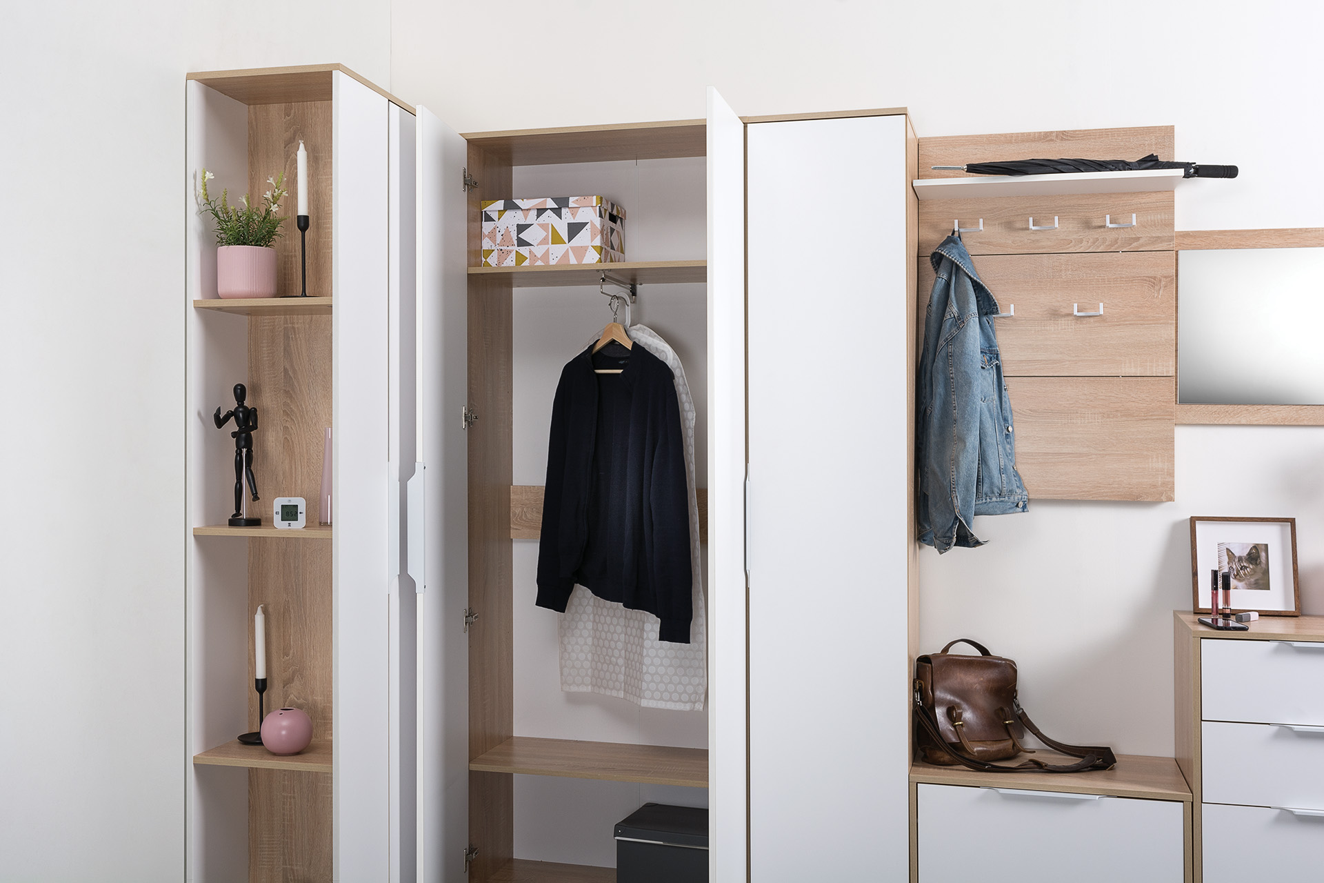 Лаконичная дизайнерская фурнитура идеально дополняет внешний вид прихожей Куба.