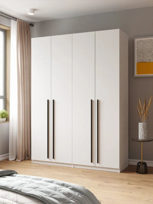 Полки и штанга позволяют разместить одежду компактно и аккуратно. Кроме того, стильные металлические ручки добавляют шкафу изысканности и элегантности.