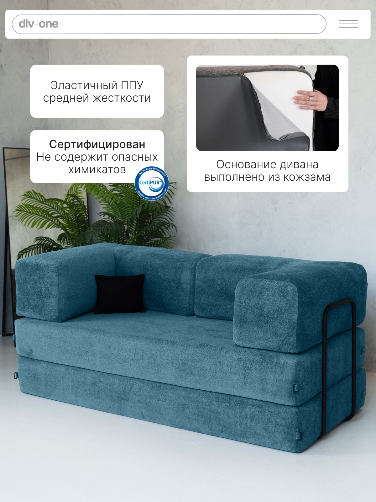 «Клауд» — это большой диван трансформер для каждого. Он станет идеальным двухспальным диваном со спинкой для молодежи, надежным семейным центром для взрослых и безопасной игровой зоной для детей. Представьте его на вашей даче, где он подарит комфортный отдых после насыщенного дня, или на утепленном балконе, превращенном в личный оазис для чтения и релаксации.