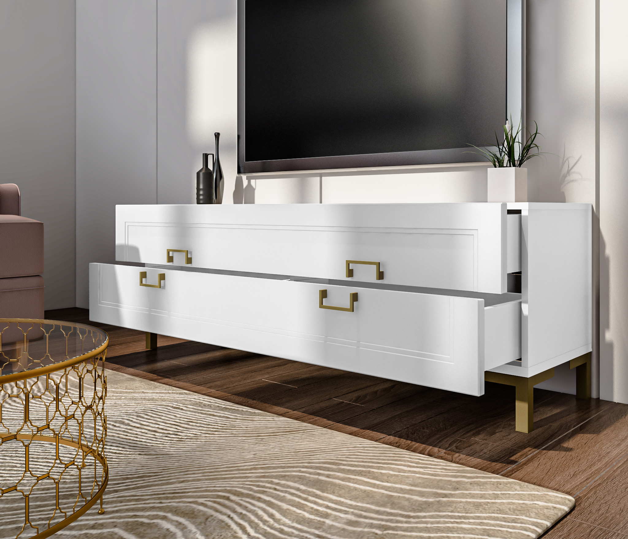 Ассоль СБ-3433 Тумба под телевизор Белый/МДФ Белый