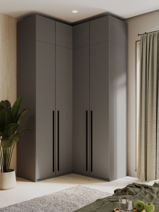 Раскладные двери обеспечивают легкий доступ к содержимому, а внутренние ящики помогут поддерживать порядок и организованность. Этот угловой шкаф подходит не только для хранения одежды, но и для использования в прихожей или гостиной.