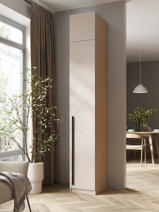 Удобная распашная конструкция позволяет быстро и легко открывать двери, обеспечивая доступ к вашим вещам. Хотя шкаф однодверный, его внутреннее пространство организовано таким образом, чтобы вы могли удобно размещать одежду, аксессуары и другие предметы. Внутри достаточно места для размещения всевозможных вещей, что делает этот шкаф идеальным выбором для хранения одежды.