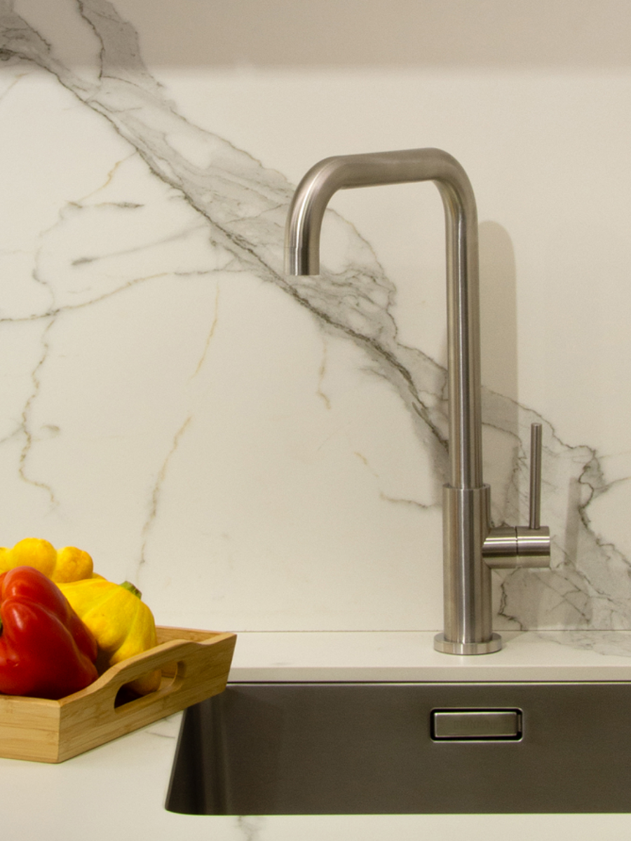 Смеситель для кухни из нержавеющей стали.
