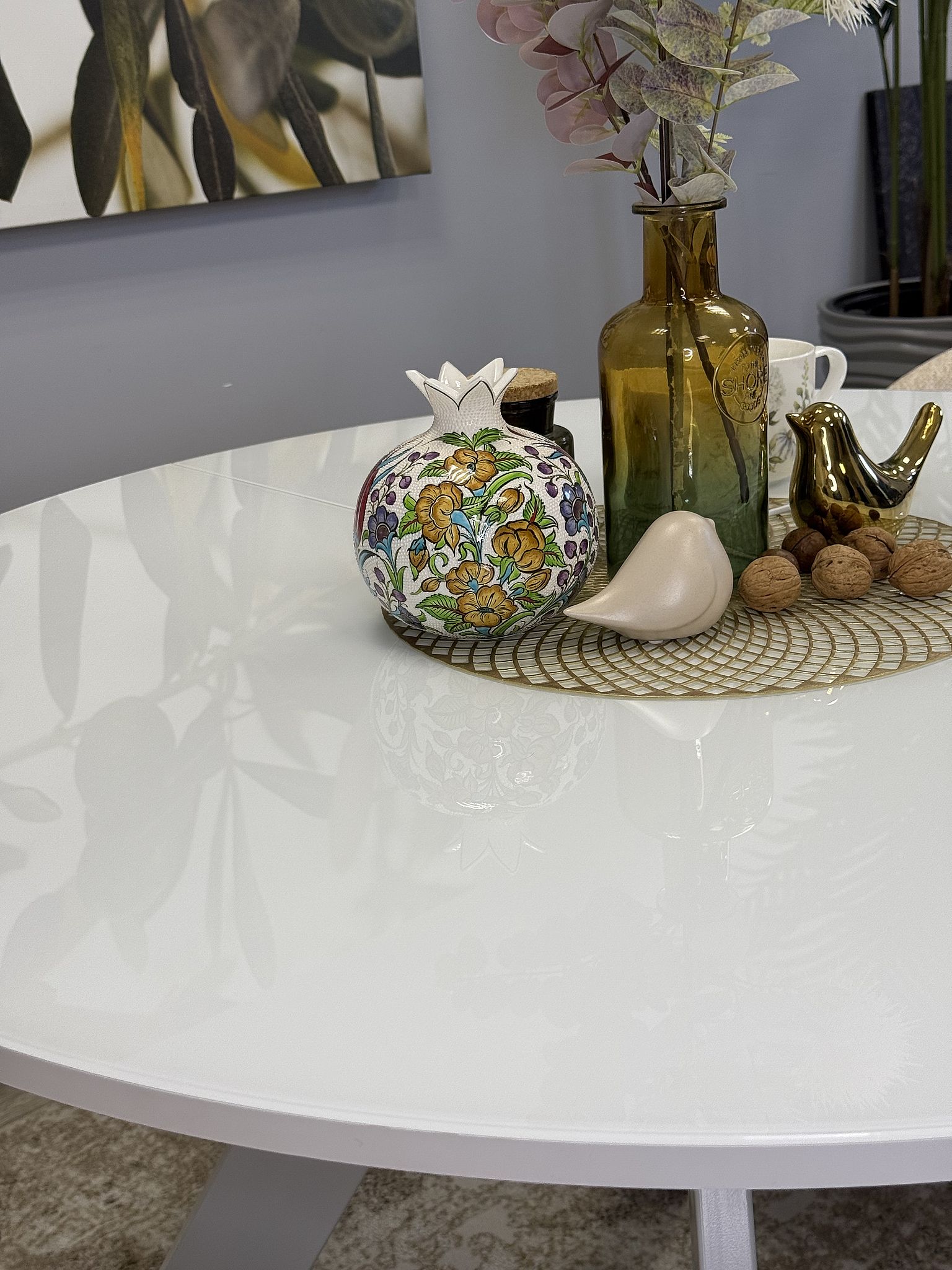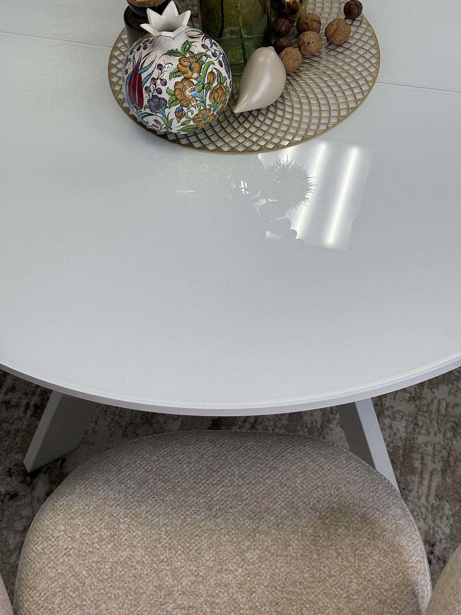 Применяется исключительно осветлённое стекло "Optiwhite", которое отличается особой чистотой и яркостью цвета. Оно надёжно предохраняет изделие от воздействия влажности, тепла и холода, а благодаря плотной фиксации на основе повреждается крайне редко.