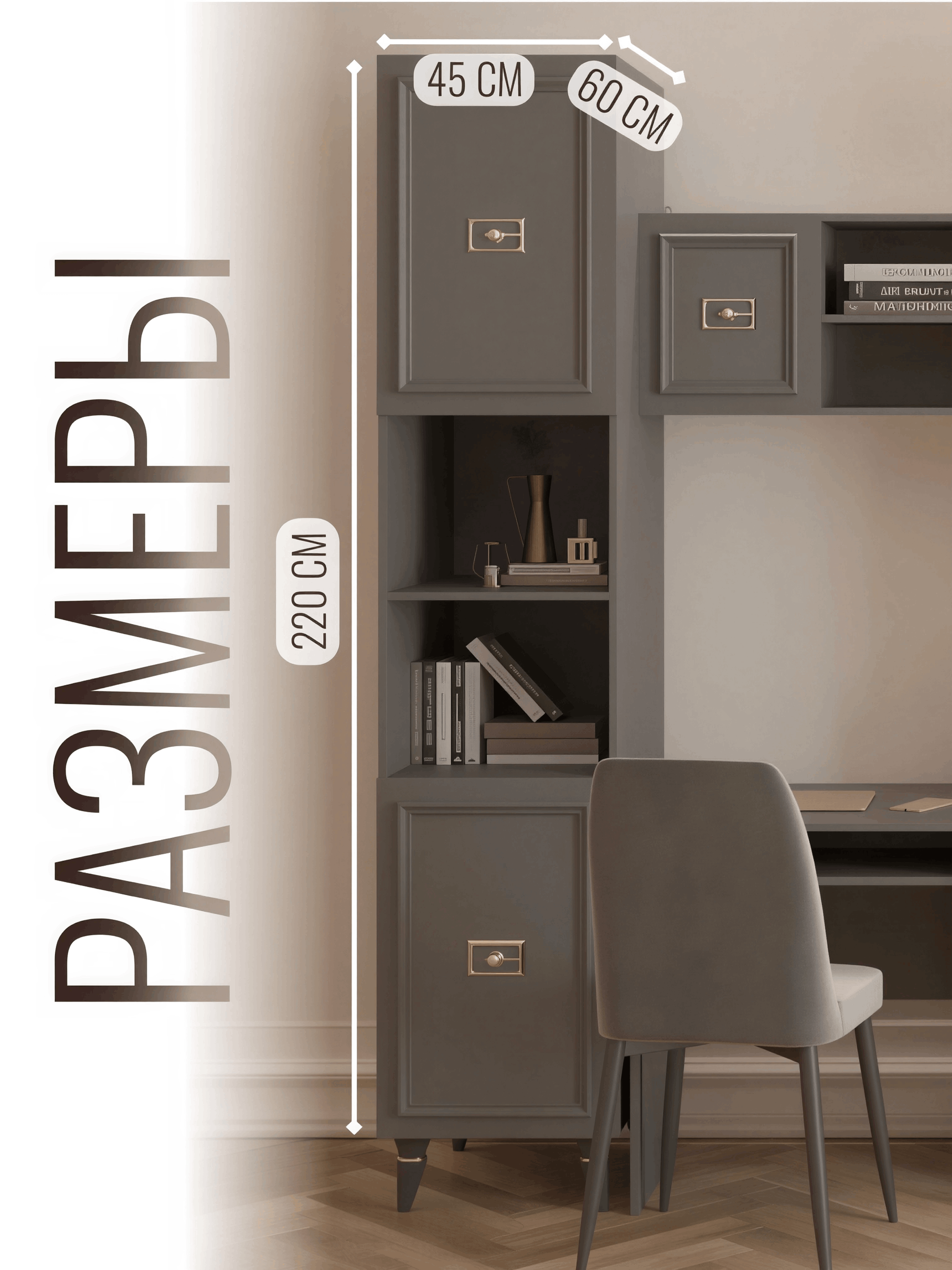 Шкаф пенал Валенсия золото 45х60х220 см (Серый)