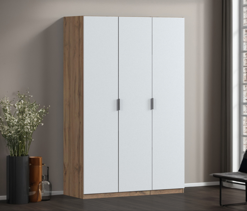 Шкаф трехдверный Макс 1500 мм, вариант №4 (ЛДСП, корпус дуб вотан) (Белый Альпийский) Код 00000337385