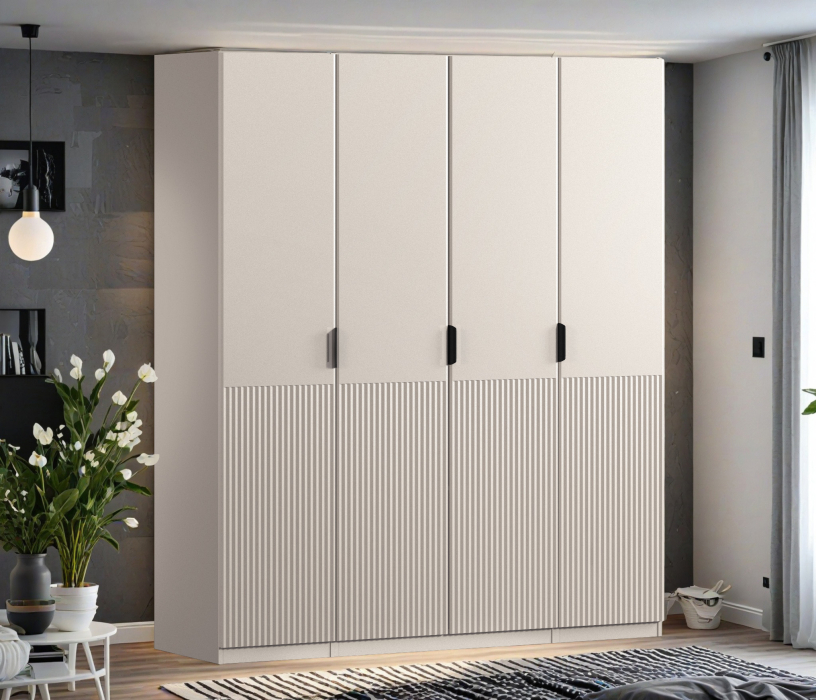 Шкаф четырехдверный Макс 2000 мм, вариант №3 (ЛДСП/МДФ) (Кашемир)