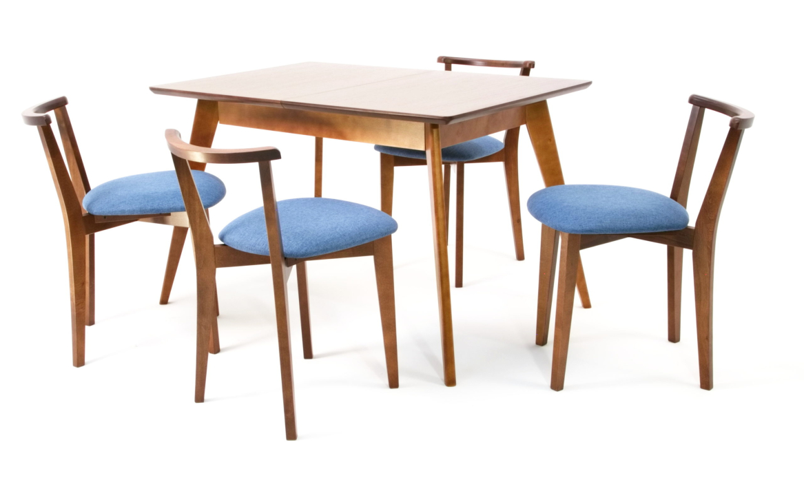 Стол Сканди 120 орех со стульями Франк Орех рогожка синий Код I0000453364