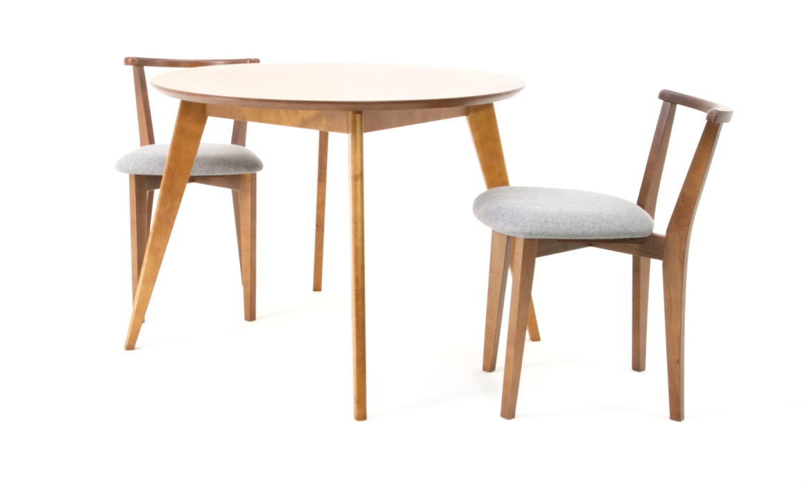 Комплект из деревянного стола Сканди на каркасе из натурального дерева и 2 стула Франк отлично подойдет к интерьеру, выдержанному в скандинавском стиле. Данный комплект станет центральным элементом в гостиной, столовой зоне, на кухне, позволив создать уютное обеденное место, где смогут собираться члены дружной семьи и их гости.У модели круглая форма столешницы. Такое решение исключит риск сколов и обеспечит безопасность, в том числе, детям.Комплект выполнен в красивом цвете - орех. Сочетание изысканного дизайна и высокого качества исполнения - главная особенность комплекта.Столешница выполнена из материалов с великолепными эксплуатационными свойствами - МДФ (Материал создается на основе натуральной древесины. Практичен, надежен, имеет однородную гладкую структуру), шпон.Мебель проста в уходе - для поддержания первозданного вида достаточно использовать простую чуть влажную салфетку по мере необходимости.Состав комплекта:- стол F004105W00- стулья R101706W01