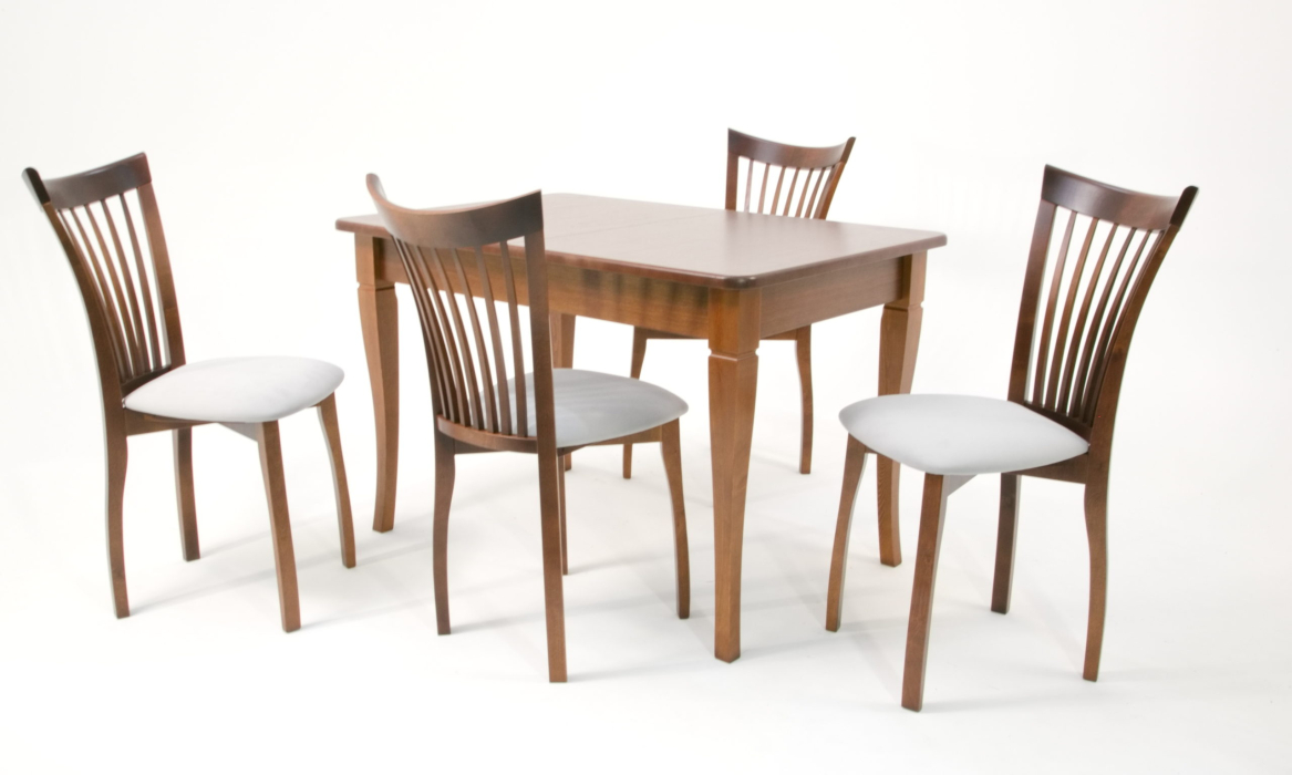 Комплект из деревянного стола Моцарт на каркасе из натурального дерева и 4 стульев Миранда отлично подойдет к интерьеру, выдержанному в классическом или софременном стиле. Данный комплект станет центральным элементом в гостиной, столовой зоне, на кухне, позволив создать уютное обеденное место, где смогут собираться члены дружной семьи и их гости.У модели скругленные углы столешницы. Такое решение исключит риск сколов и обеспечит безопасность, в том числе, детям.Комплект выполнен в красивом цвете - орех. Сочетание изысканного дизайна и высокого качества исполнения - главная особенность комплекта.Столешница выполнена из материалов с великолепными эксплуатационными свойствами - МДФ (Материал создается на основе натуральной древесины. Практичен, надежен, имеет однородную гладкую структуру), шпон.Мебель проста в уходе - для поддержания первозданного вида достаточно использовать простую чуть влажную салфетку по мере необходимости.