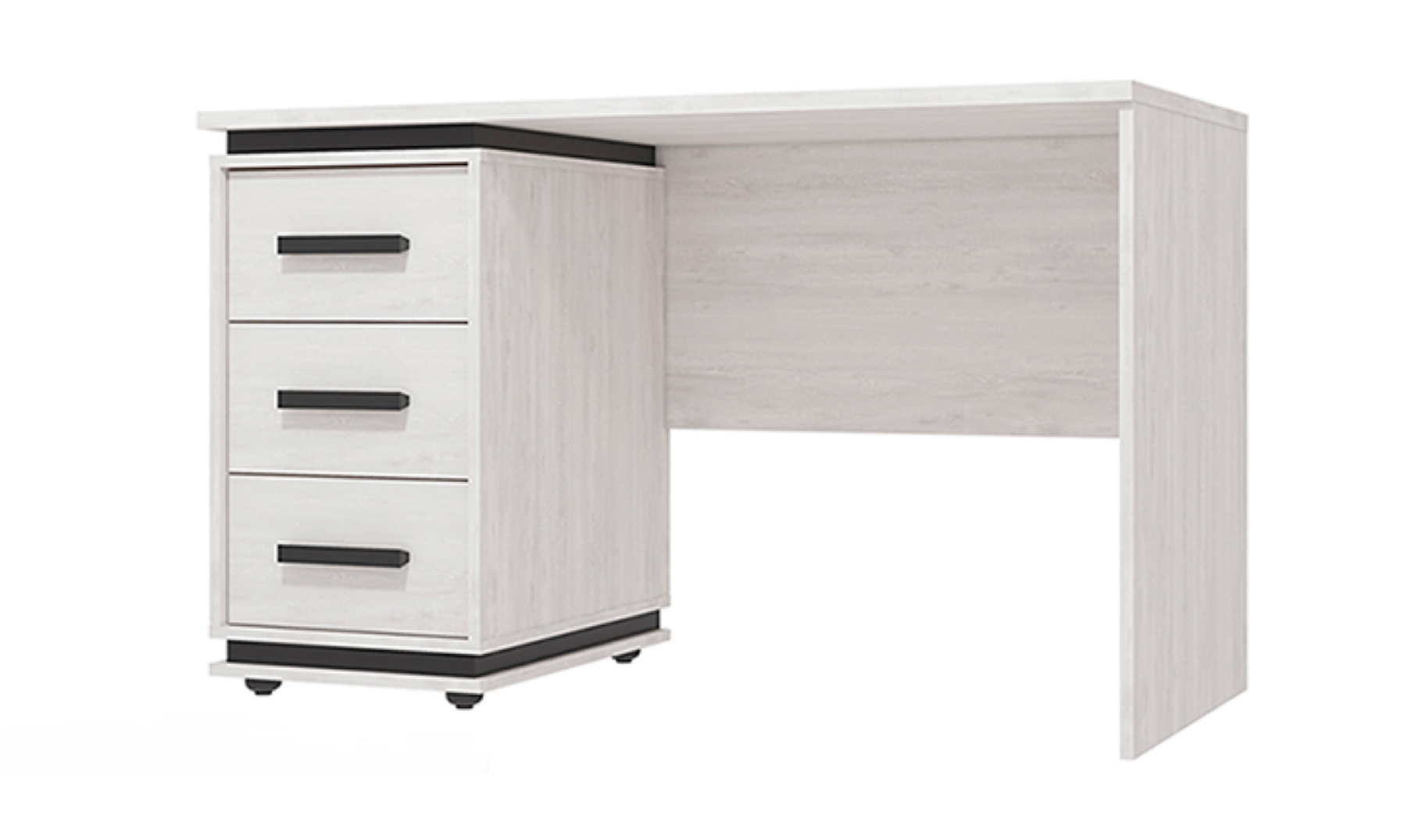 За счет просторной рабочей поверхности OSLO 84 Cтол письменный одинаково удобен как для левши, так и для правши. Благодаря возможности левосторонней и правосторонней сборки три выдвижных ящика на шариковых направляющих можно установить с любой удобной для вас стороны. Столешница 22 мм и ударопрочная кромка в 2 мм повысят срок службы стола. Под столешницей - небольшая ниша со стороны ящиков. В нишу спокойно может поместиться планшет или журнал.
