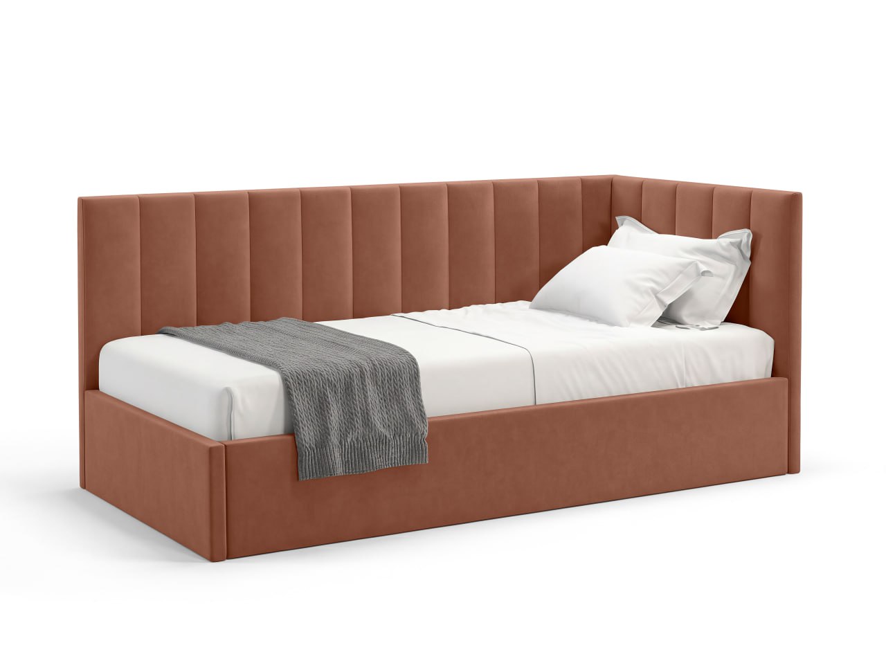KID — больше, чем односпальная кровать. Это уют, который нравится детям, и, практичность, которую ценят родители. Мягкие линии, современная эстетика и комфортная спинка делают её идеальной для сна, отдыха и чтения. Она создана для ежедневного использования. Кровать не перегружает пространство и визуально сохраняет лёгкость в комнате. Комфортная спинка — удобно опираться во время чтения или отдыха. Размер: 2140*1050*920см (д*в*ш), спальное место (размер матраса): 90×200 см — оптимальный формат для ребёнка и подростка, который растёт, а, также, для отдыха взрослого человека, для гостевой комнаты. Подъёмный механизм: есть. Прочная сварная ортопедическая решетка. Бельевой ящик: есть. Опоры: пластик. Каркас: брус/фанера/ДСП. Наполнение каркаса и спинок: ППУ. Ткань - велюр с трендовой цветовой палитрой. Угол универсальный (право/лево). Задняя стенка изголовья выполнена из технической ткани. Качество материалов: в конструкции используются качественные материалы и надёжные элементы, рассчитанные на активную ежедневную эксплуатацию, чтобы кровать сохраняла форму и комфорт в течение долгого времени. Матрас приобретается отдельно, с необходимыми свойствами (пружинный, безпружинный, с нужным уровнем допустимой нагрузки, жесткостью, наличием нужных слоев), рекомендуемая высота - 21-23 см. Комплектация: 3 пакета. Вес - 69 кг.