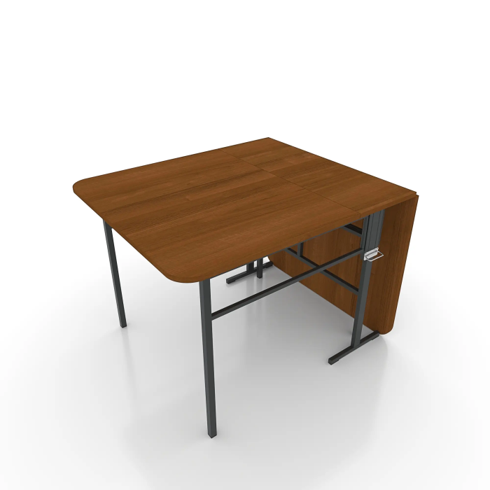 Каркас стола выполнен из металлических профилей, покрытых полимерной эмалью. Это обеспечивает долговечность и устойчивость конструкции. Столешница изготовлена из ЛДСП толщиной 16 мм, торцы столешницы защищены 1 мм кромкой из ПВХ.