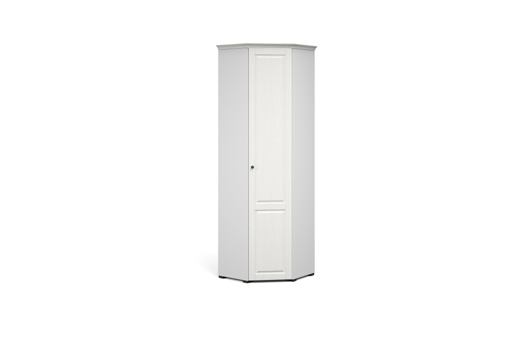 Угловой шкаф в современном классическом стиле сочетает в себе функциональность и эффектный внешний вид. Фрезерованные фасады из МДФ с рисунком и текстурой натурального дерева наполняют комнату светом, делают ее просторнее. Оригинальные металлические ручки придают изысканность. Внутри предусмотрены секции для белья и отделение со штангой. Шкаф позволяет рационально использовать пространство и будет хорошо смотреться даже в небольшой комнате, служит связующим звеном для составления угловой системы хранения. Выполнен из экологичных материалов.