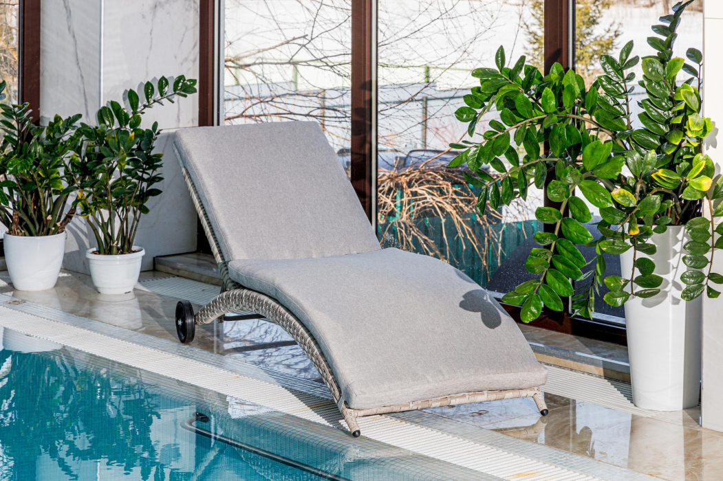 Материал шезлонга - искусственный ротанг первой категории