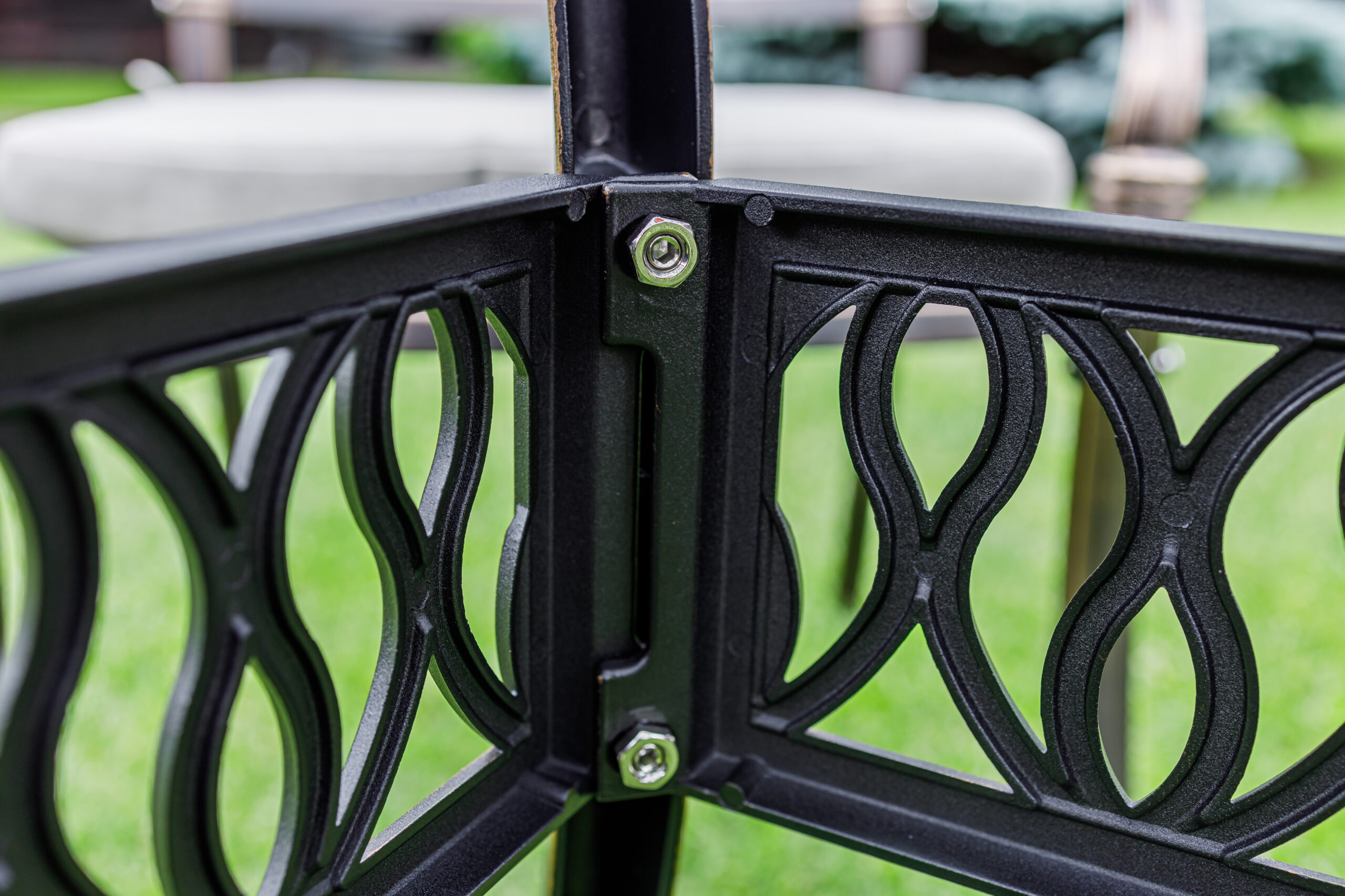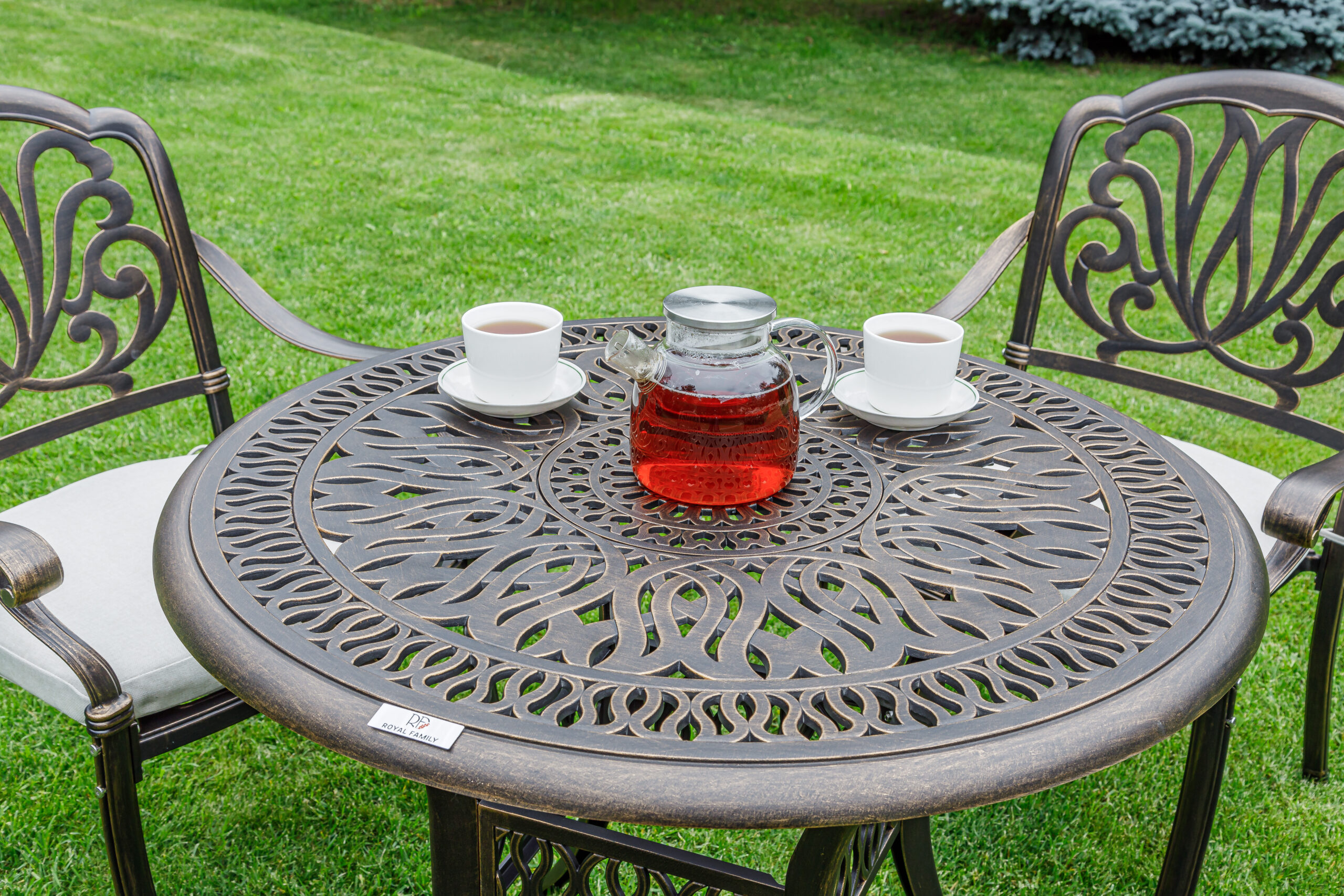 Комплектация и габариты: Кресло (4 шт) - 68х65х91 см Обеденный стол: Диаметр - 90 см Высота - 74 см Материалы: Материал каркаса – литой алюминий Материал столешницы – алюминий Материал чехла на подушки - олефин (водоотталкивающая ткань) Материал наполнителя подушек для сидения - поролон Цвет комплекта - бронзовый Цвет подушек – бежевый Дополнительная информация: Количество посадочных мест – 4 человека Максимальная нагрузка на посадочное место - 150 кг Чехлы съемные – да Накладки на ножки - да (пластиковые) Держатели и крепления подушек зависят от поставки и не являются неотъемлемой частью комплекта Гарантийный срок - 1 год Эксплуатационный срок - 10 лет Страна производитель - Китай