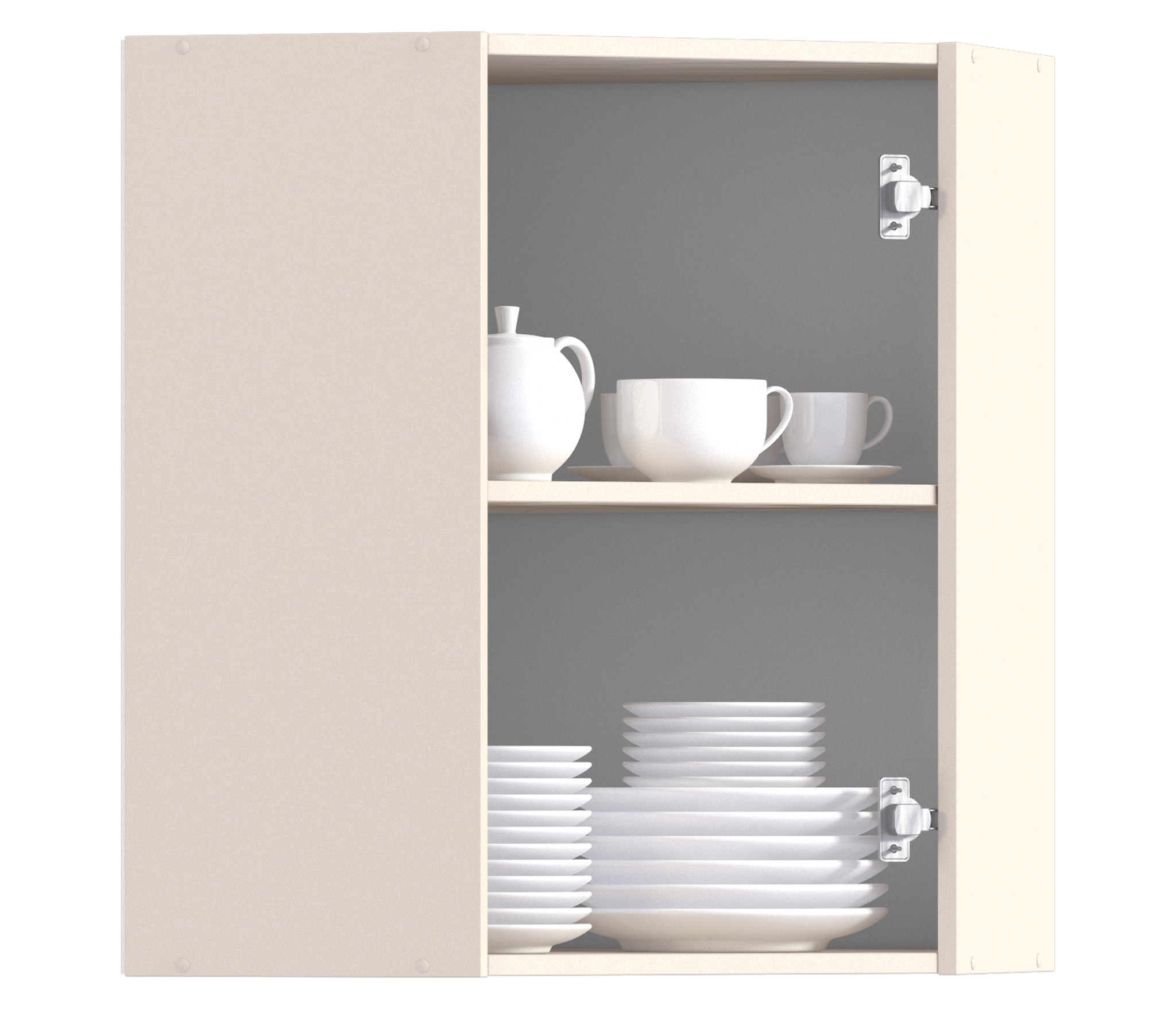 Оставив полку открытой, можно сделать ее не только удобным, но и необычным элементом интерьера. Если же дополнительно заказать дверцу, то «Регина РПУ-60» превратится в стильную навесную витрину. В обоих случаях два вместительных отделения легко справятся с хранением посуды, будь то блюдца или габаритные кастрюли.