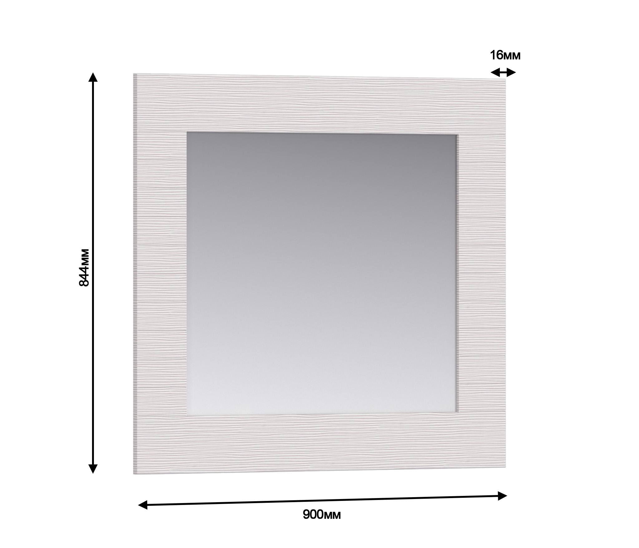 Квадратное зеркало в широкой фактурной раме из коллекции модульной спальни «Гретта». Для изготовления наших зеркал мы используем только проверенное сырье, надежную фурнитуру и интересный дизайн. Зеркало можно повесить на стену или установить на туалетном столике. Оно может выступать соло, а может дополнить панно из нескольких зеркал. Фантазируйте, вы сами создаете свой интерьер! И еще наш совет, поставьте перед зеркалом светильник, свет ламп отраженный в зеркале придаст комнате дополнительную глубину и объем. Рамка выполнена из МДФ, цвет Онденс.