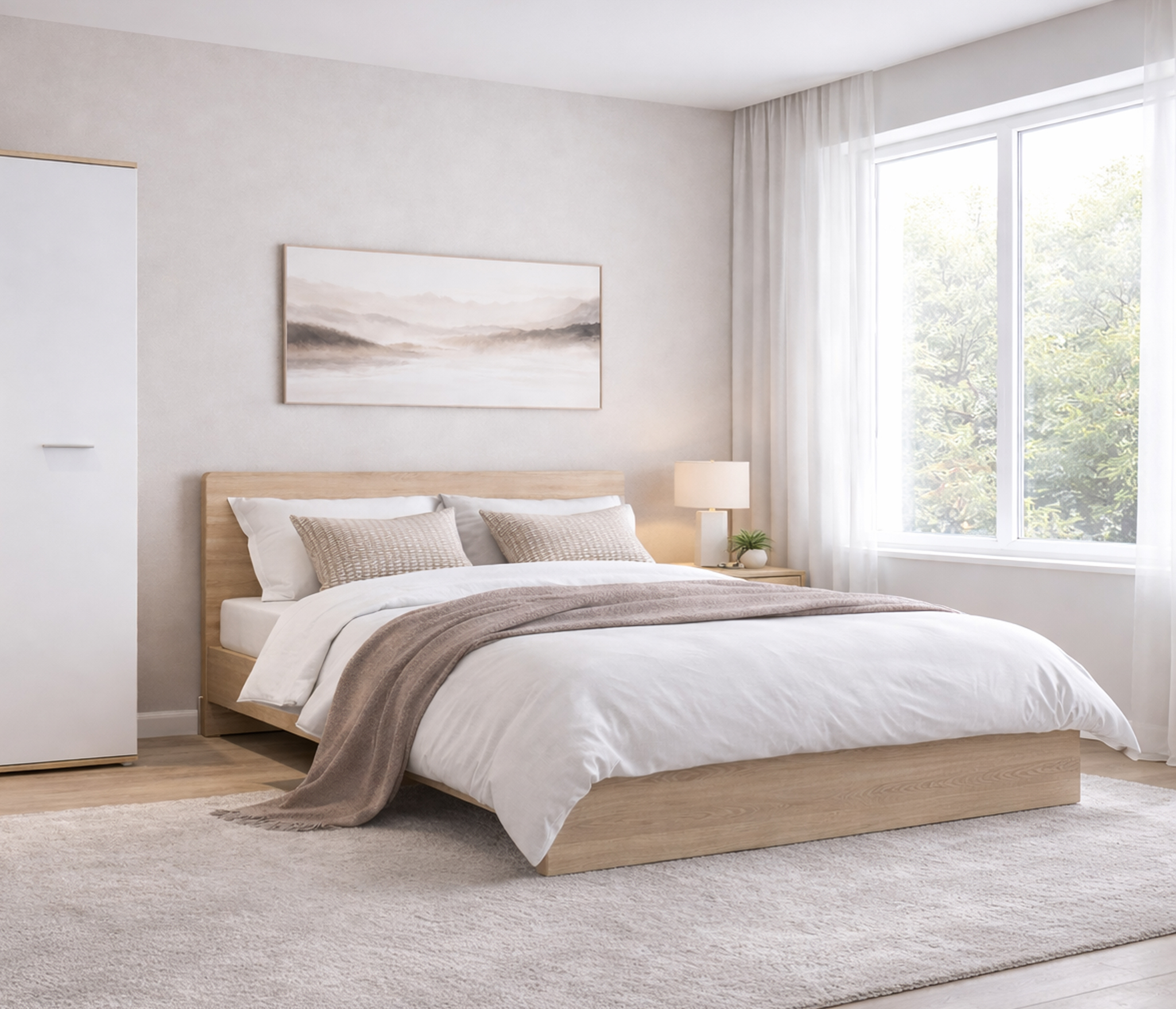 Внешне выглядит мебель довольно мило. Сборщики быстро установили шкаф, кровать, стеллаж и стол.