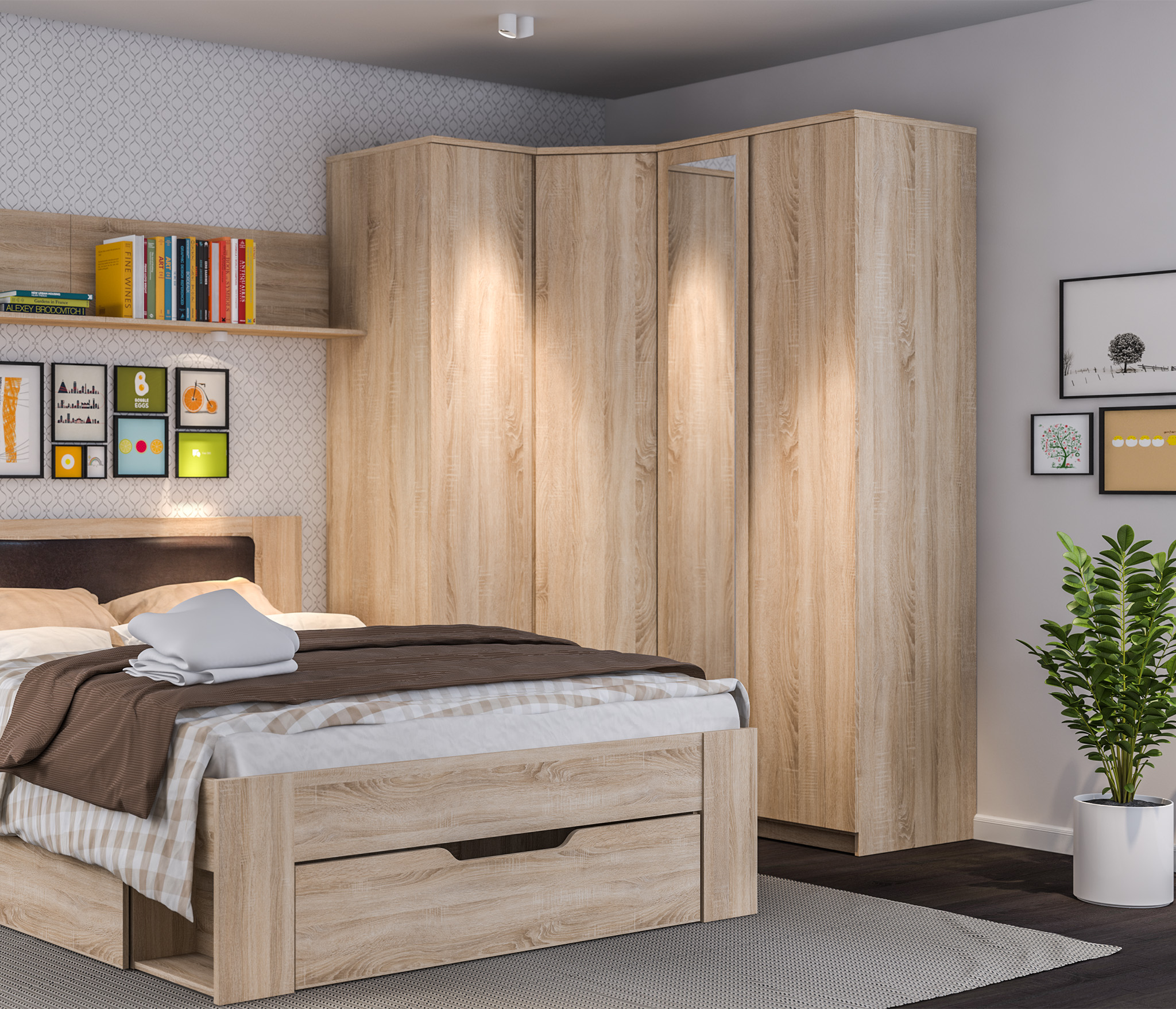 Шкаф угловой Веста СБ-2538 (Дуб Сонома)