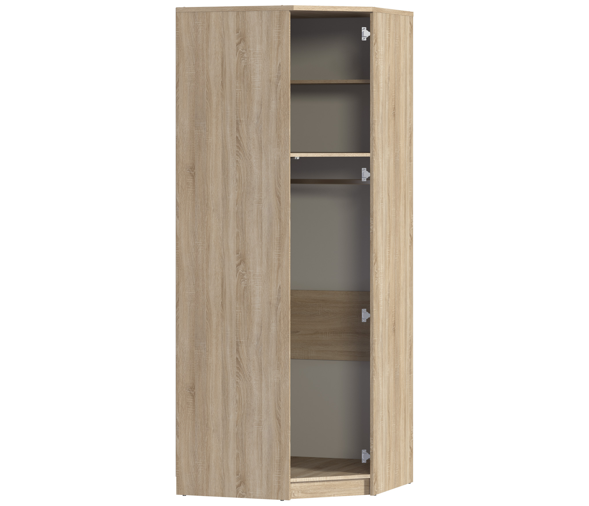 Угловой шкаф Веста СБ-2538 – оптимальное решение вопроса хранения. Он одинаково органично будет смотреться в спальне, прихожей, детской комнате или кабинете.