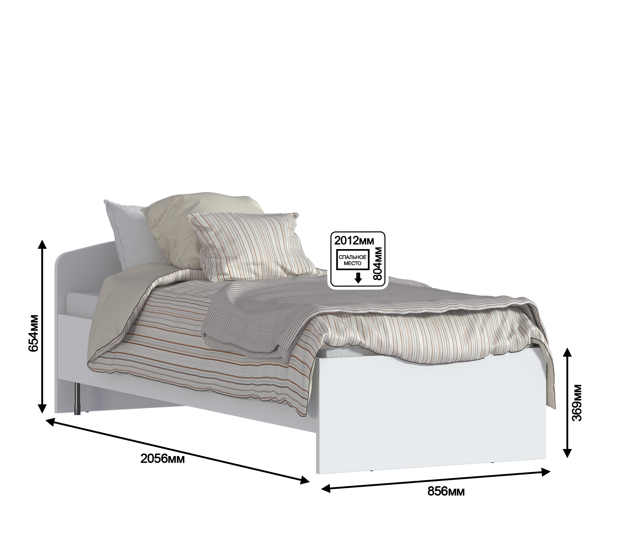 Габаритные размеры – ширина 85 см, глубина 205 см, высота изголовья 65 см.