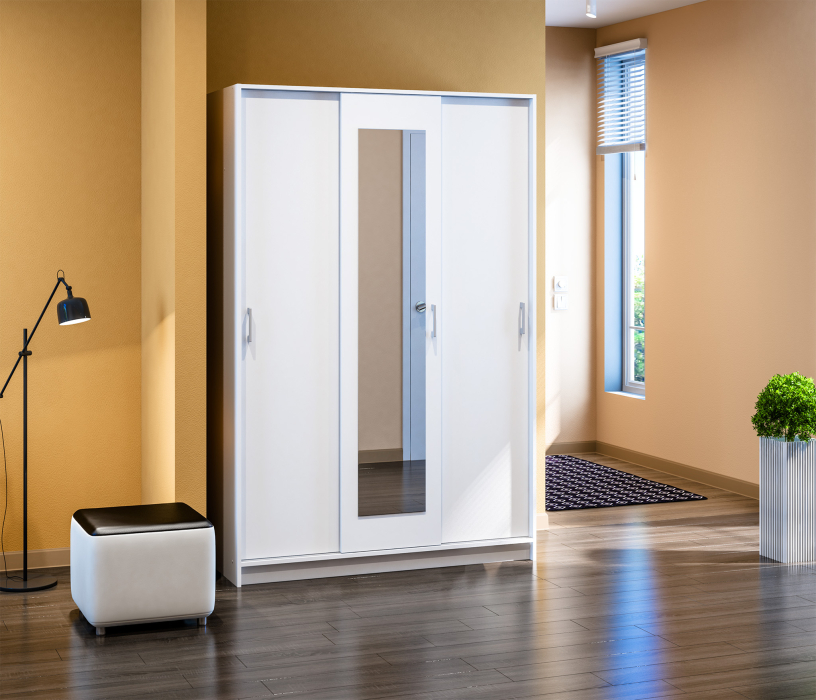 Шкаф-купе 3-х дверный Терра СБ-2610 с зеркалом Белый (Белый)