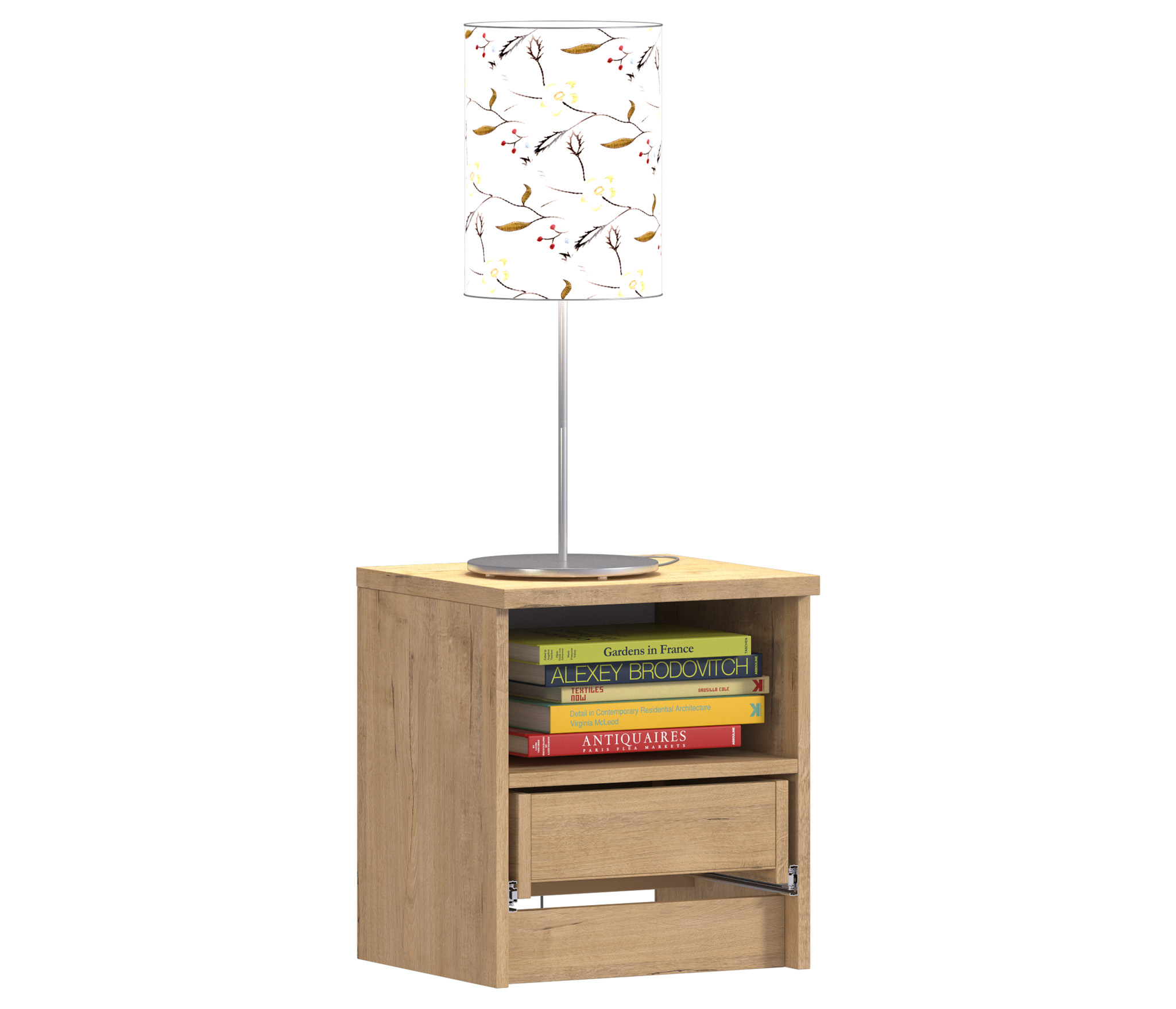Габаритные размеры тумбы - ширина 40 см, высота 44 см, глубина 35 см, Один выдвижной ящик и открытое отделение, куда положить планшет или книгу. Стиль тумбы современный - Сканди, хай тек. Наиболее выигрышно тумба будет смотреться в интерьере в сочетании с другими предметами мебели из коллекции "Веста". Корпус и фасад тумбы выполнен из современного и прочного ЛДСП.