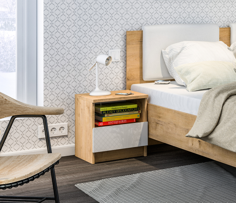 Покупал две тумбы в спальню. Очень хорошо гармонируют с обоями и шторами. Собрал сам, сборка простая. Порадовала не высокая цена в этом магазине.