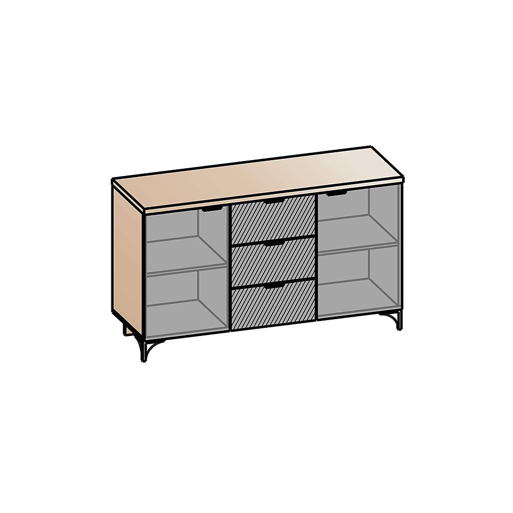 Комод укомплектован направляющими полного выдвижения. Строгая лаконичная ручка черного цвета. Крышки 32 мм.