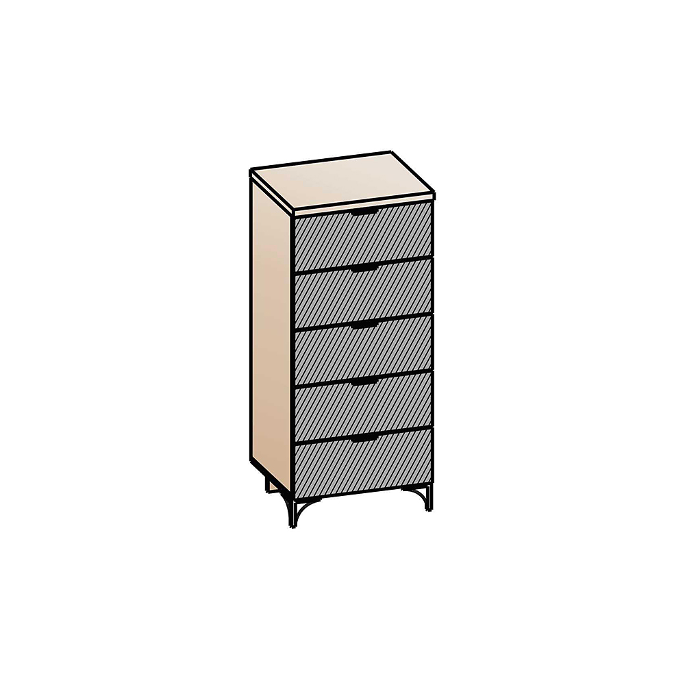 Комод укомплектован направляющими полного выдвижения. Строгая лаконичная ручка черного цвета. Крышки 32 мм.