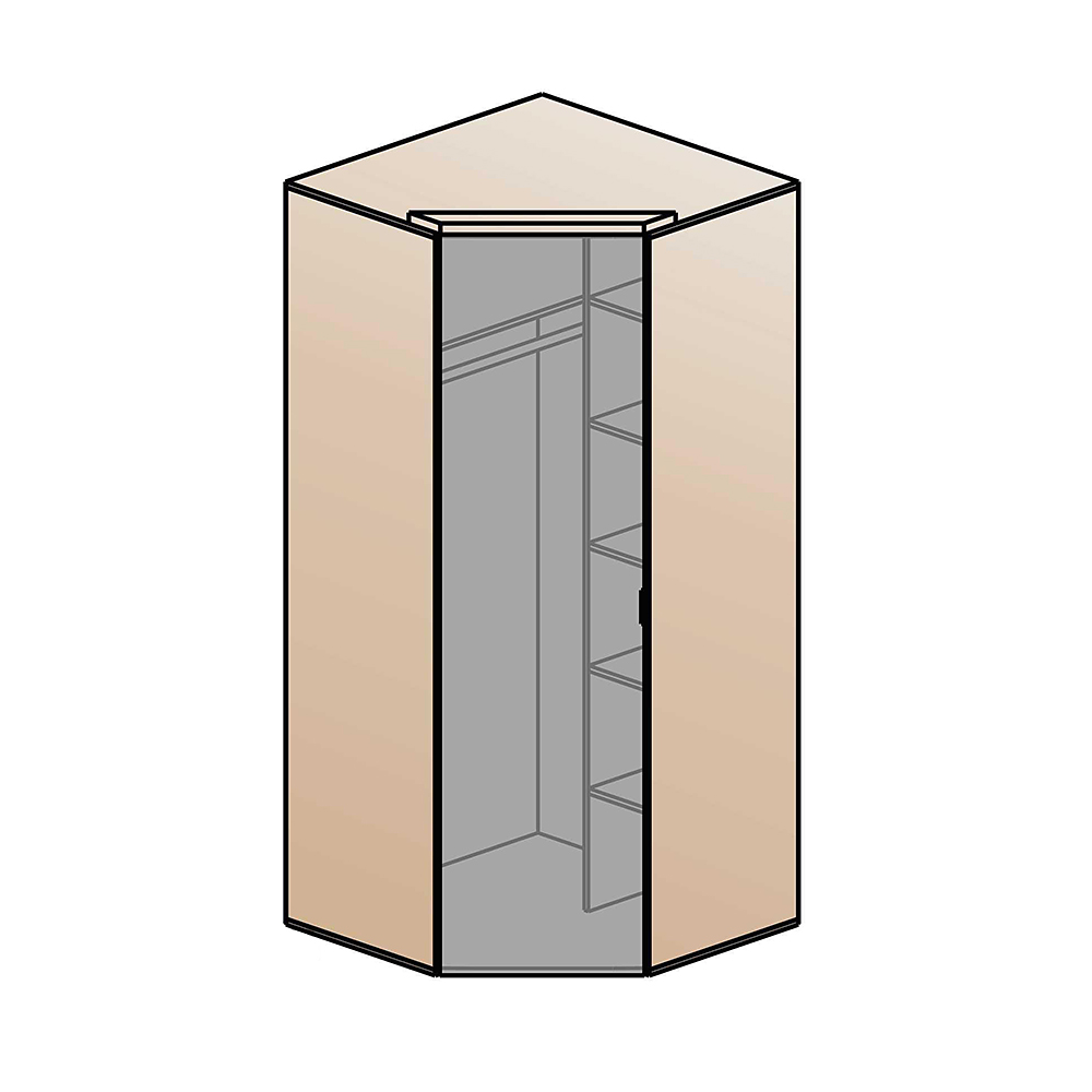 Угловой распашной шкаф имеет 1 дверь (одну глухую)