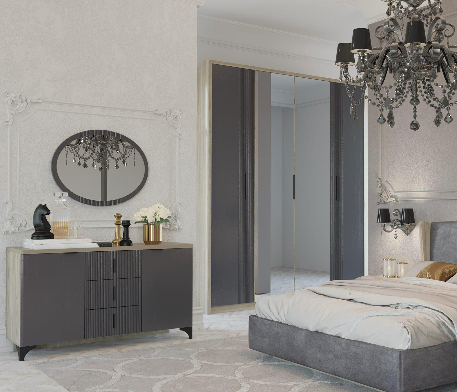 Комод Шер КМ-2302, дуб серый, айронвуд серебро Код R0000284881