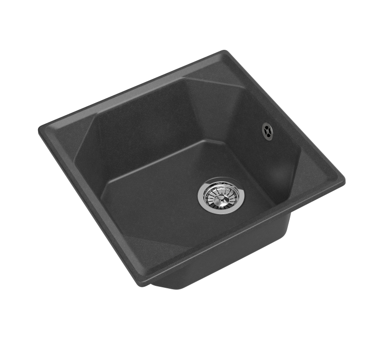 Мойку для кухни GranFest UNIQUE 500 легко отличить от любых других благодаря выраженной геометрии. Дизайнерскую модель отличают практичная чаша оригинальной формы размером 435*435 мм, и глубиной 200 мм, которая с легкостью позволит разместить внутри крупногабаритную посуду и промывать ее без лишних усилий. Мойка для кухни устанавливается в шкаф шириной 500 мм, поэтому место для нее найдется даже в небольшом кухонном гарнитуре. Готового отверстия под смеситель нет. Поэтому вы можете либо сделать его в удобном месте, либо установить смеситель прямо в столешницу. Модель GranFest выполнена из композитного материала, в основе которого лежит мраморная крошка и базальтовое волокно, что обуславливает повышенную прочность и долговечность. За счет скошенных, не острых углов чаши, и стойкому защитному покрытию ухаживать за чашей мойки одно удовольствие.