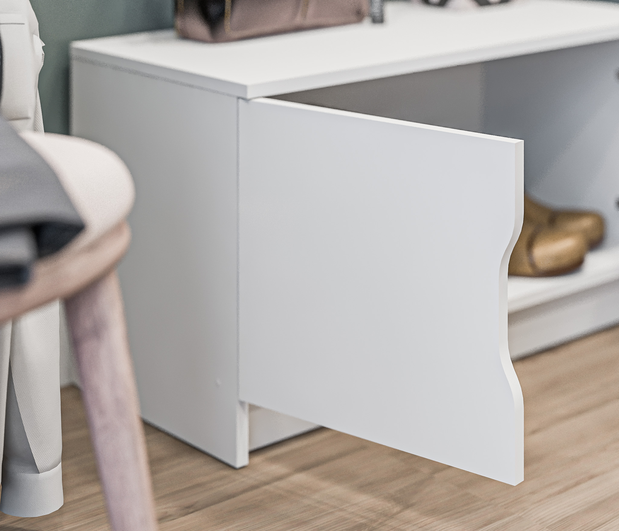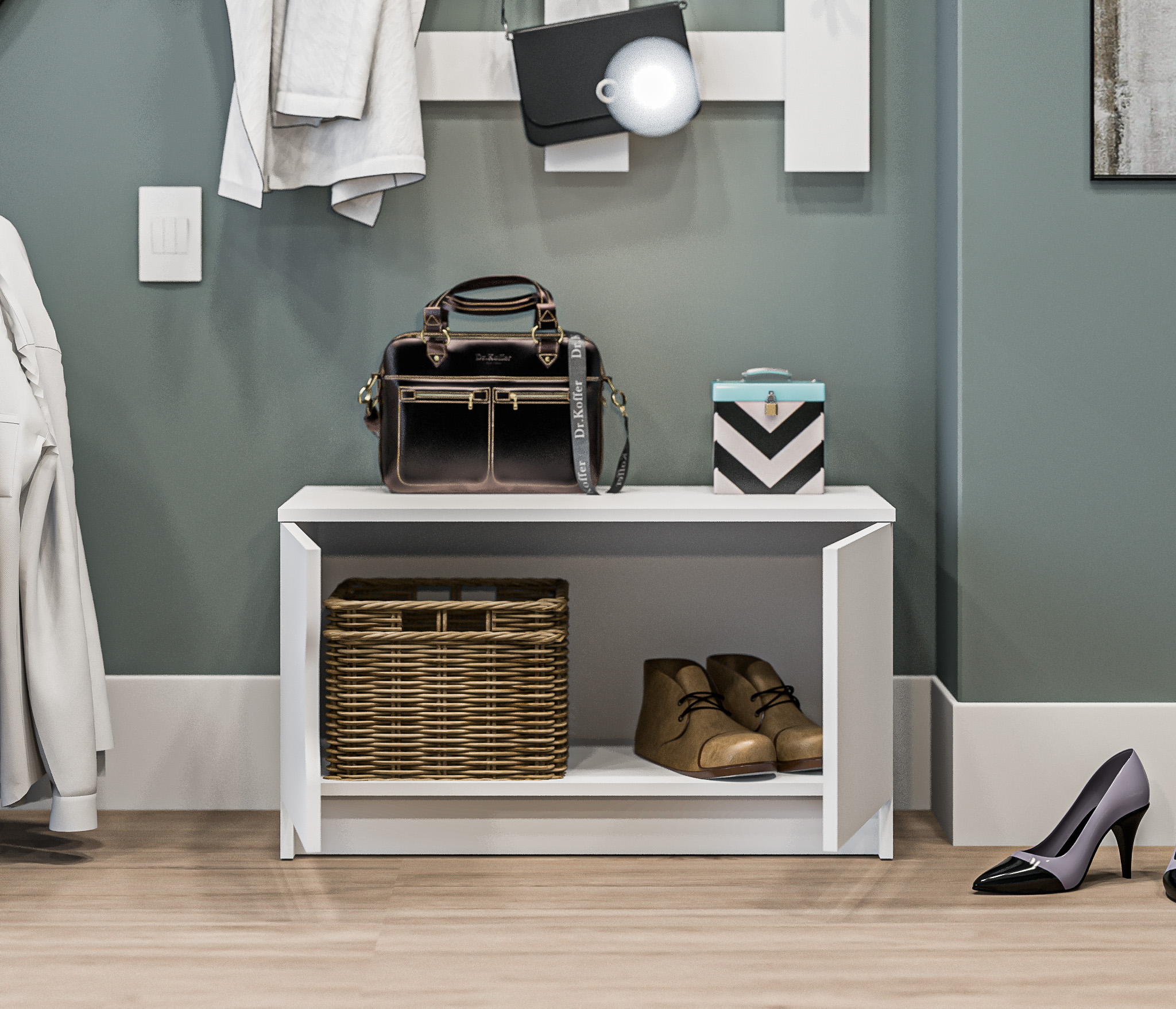Тумба предлагает удобное хранение и функциональность. Она оснащена двумя дверцами, вы можете хранить обувь, аксессуары и другие предметы, необходимые в прихожей.