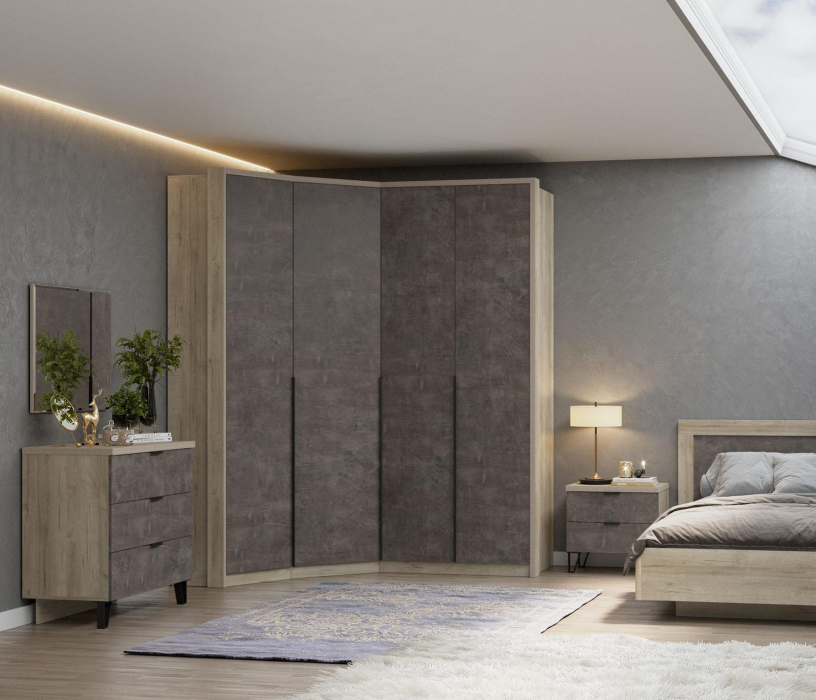 Индустриальная эстетика стиля лофт в сочетании с концептуальным декором и обилием роскоши фактур на фасадах- яркий контраст белого и серого камня, который выглядит тёплым. Природный цвет материала ЛДСП с прожилками и матовая металлическая текстура длинных ручек создает мягкий и запоминающийся акцент на чистых формах. Создавая атмосферу тепла, уюта, легкости, впечатления дорогого интерьера привлекая к себе внимание и визуально обогощая стилистику любого пространства.
