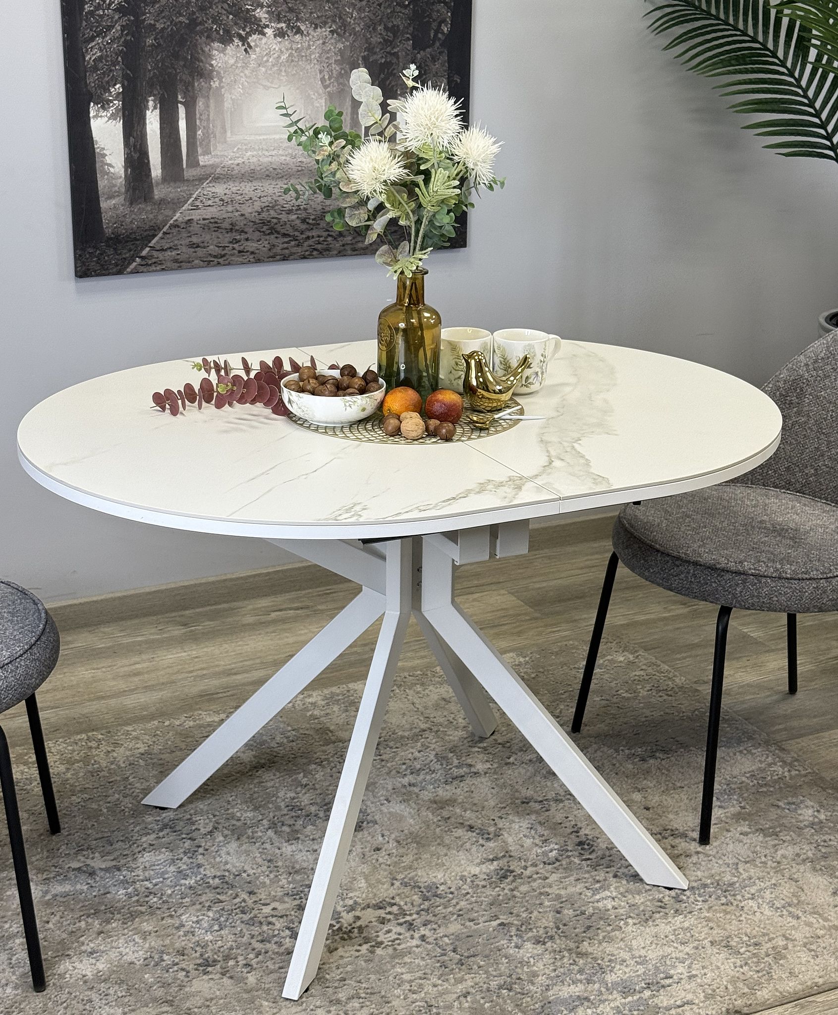 Стол KENNER DO1100 раздвижной, керамика (белый мрамор) Код I0000376191