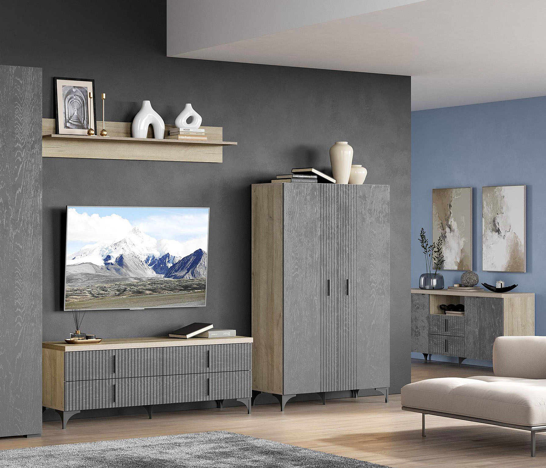Нежность и насыщенность — такое сочетание вызывает гостиная Шер. Модули смотрятся объемно со множеством приятных деталей. Роскошные по цветовой палитре материалы, в сочетании с естественными древесными текстурами придают вашему дому атмосферу спокойствия, манящего уюта и безмятежного настроения.
