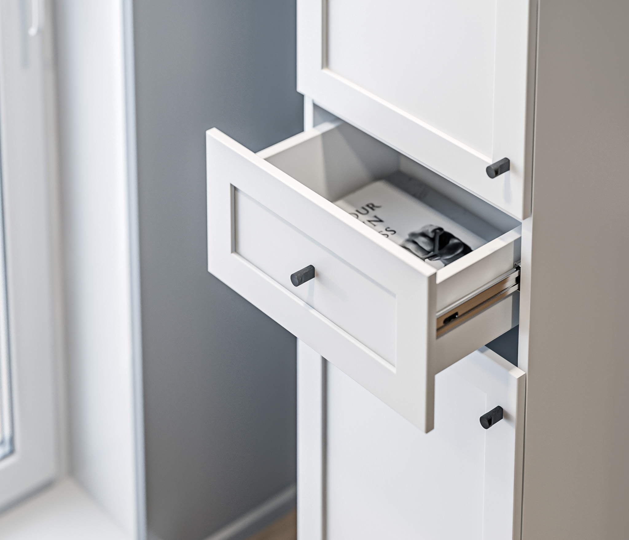 МС Твин предоставляет возможность собрать шкаф или стеллаж по своему вкусу. Вы сами выбираете размеры, цвет ручек: белый или черный, наполнение: ящик или полки. Помимо этого, вы можете решить, оставить фасады глухими или выбрать стеклянные, чтобы добавить прозрачности и легкости в ваш интерьер. Создайте шкаф-стеллаж, который идеально подходит для ваших потребностей и вписывается в ваш стиль.