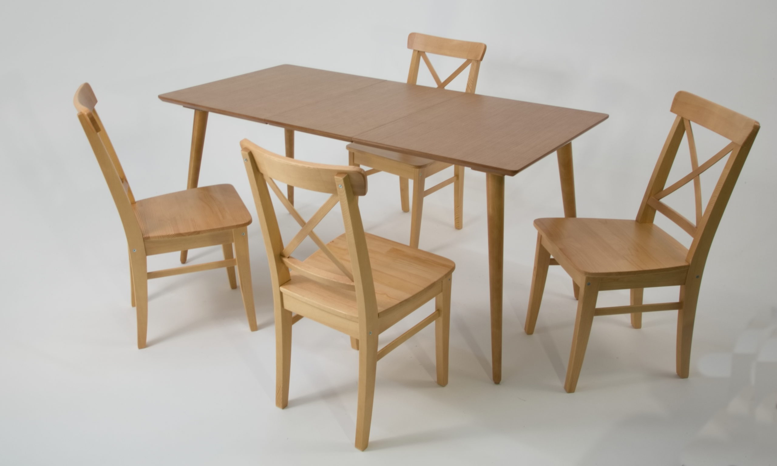 Опоры выполнены из натурального дерева высокой плотности — берёзы. В этой коллекции столешницы выпускаются в нескольких вариантах -МДФ со шпоном и натуральными оттенками, либо МДФ с покрытием эмалью (производство — Италия).