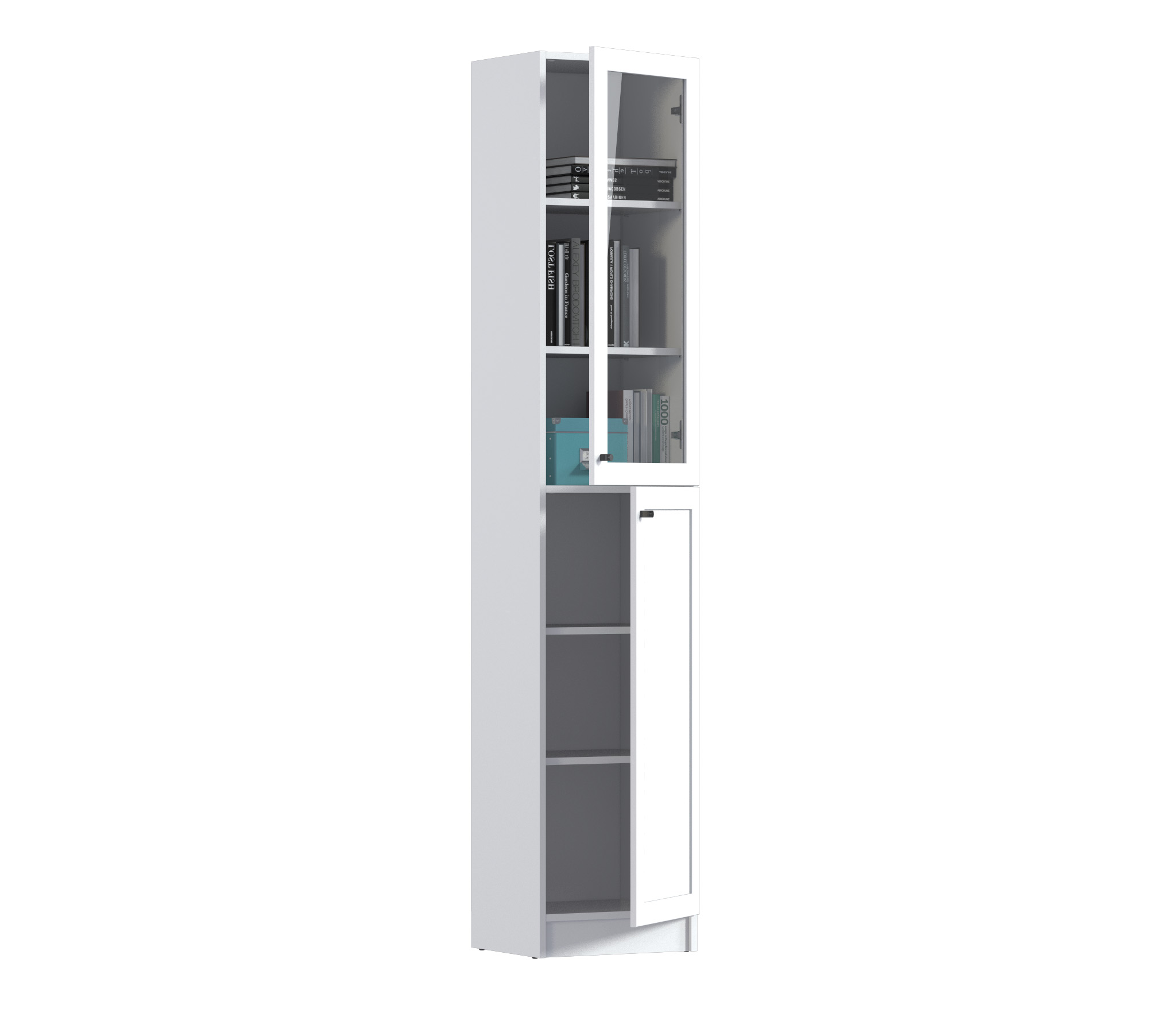 МС Твин предоставляет возможность собрать шкаф или стеллаж по своему вкусу. Вы сами выбираете размеры, цвет ручек: белый или черный, наполнение: ящик или полки. Помимо этого, вы можете решить, оставить фасады глухими или выбрать стеклянные, чтобы добавить прозрачности и легкости в ваш интерьер. Создайте шкаф-стеллаж, который идеально подходит для ваших потребностей и вписывается в ваш стиль.