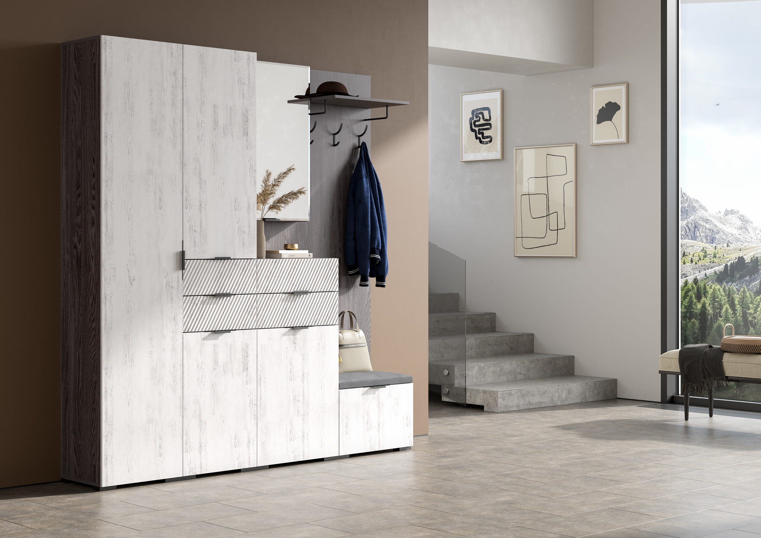 Новые современные цвета: черный ясень — это глубокий серый, легкий и одновременно динамичный цвет в сочетании с санторини белым — цвет с древесными линиями, создающими гармоничный контраст, наполняя пространство воздухом и природной энергией. Визуальная легкость, эстетика графики, элегантная окантовка с четкими формами, баланс теплых и холодных оттенков легли в основу дизайна новых модулей.