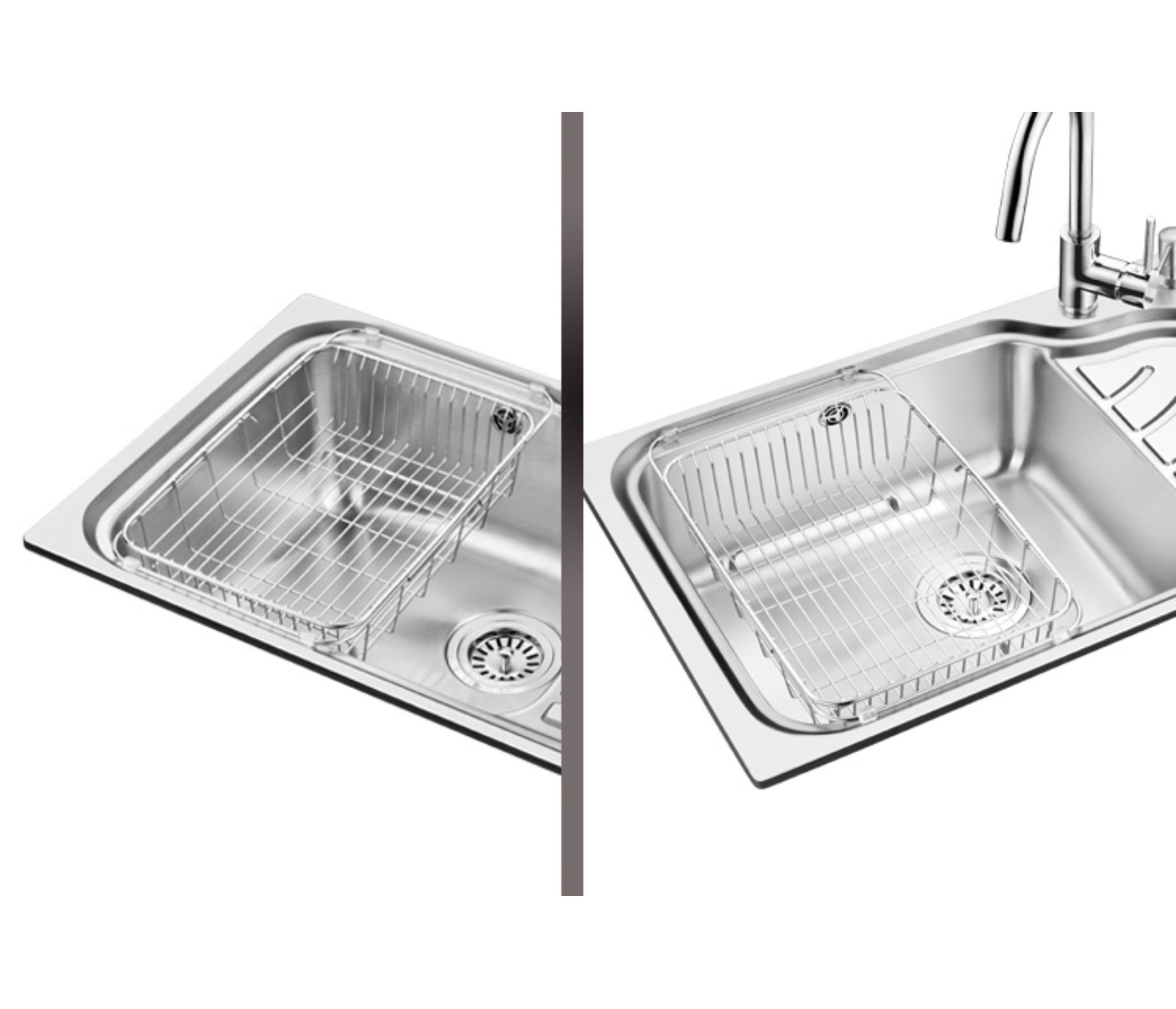 В зависимости от размеров и качества Вашей мойки для кухни Вы можете приобрести корзину, выполненную из нержавеющей стали. К тому же, прутья сушки, расположенные на дне корзины, могут быть изогнутой формы, что сокращает процесс сушки посуды.